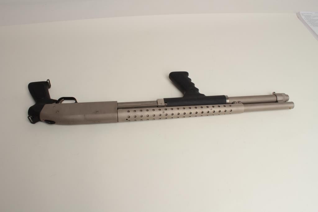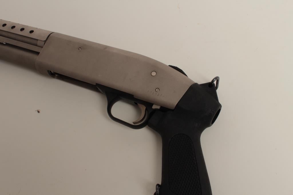 in 12GA with 20” barrel, stainless steel finish, full magazine, synthetic grips, and sling swivels, S/N P586204. In good to very good condition overall showing handling marks. Good bore. (Modern) $200-$400