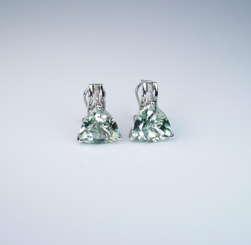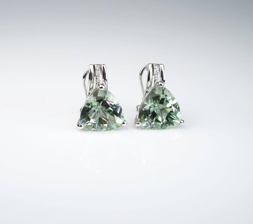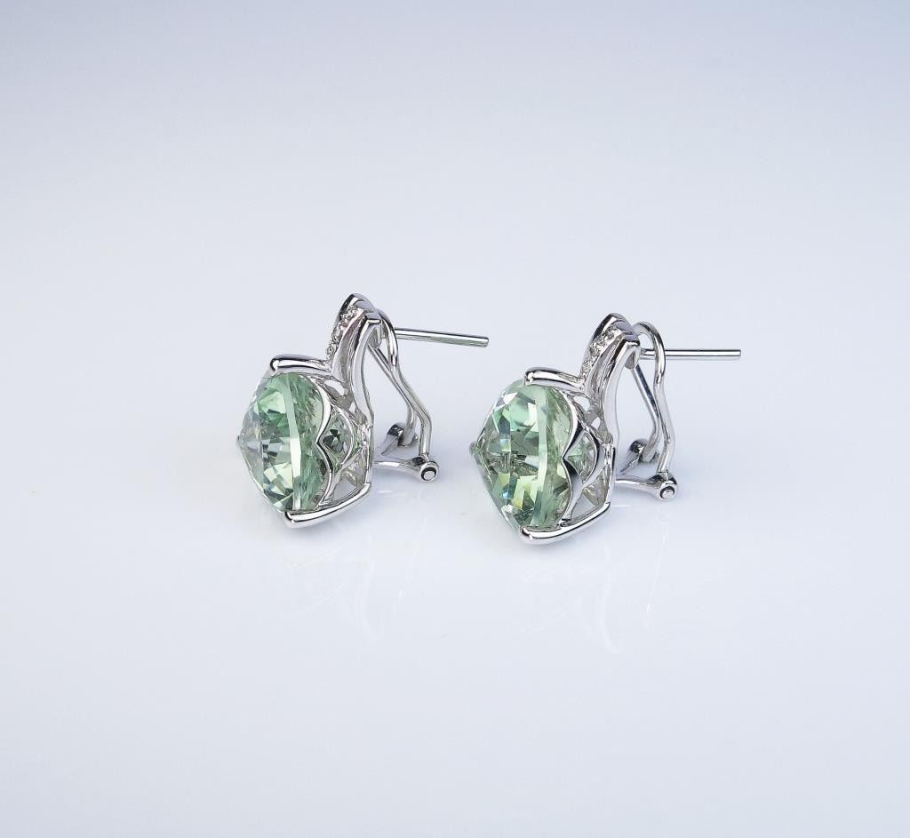 green Amethysts weighing approx. 15.00 carats and six accent diamonds set in a 14 karat white gold custom made settings. Retail $2,000-$3,000 Estimates $1,500-$2,000