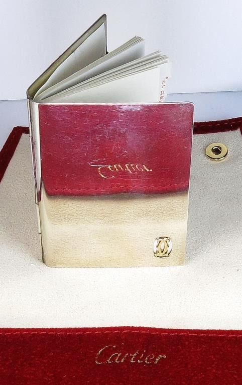 gold on logo unused address book in original Cartier red pouch. Collector’s item Estimates $800- $1,200