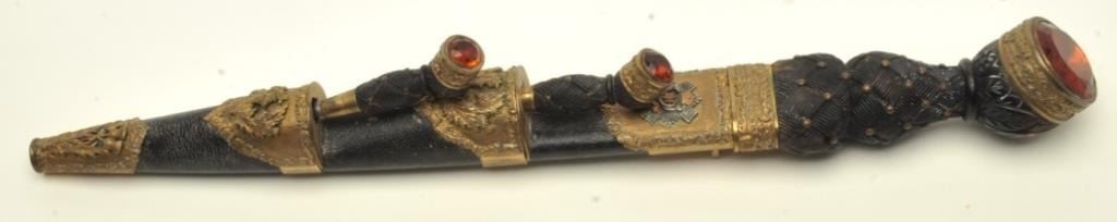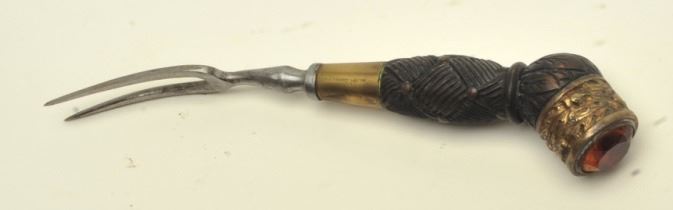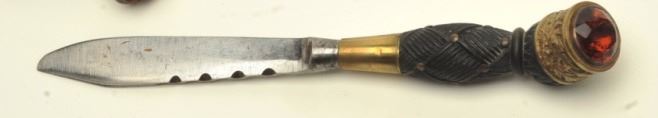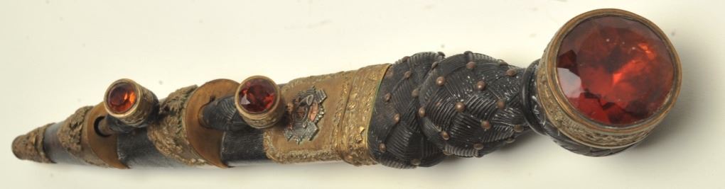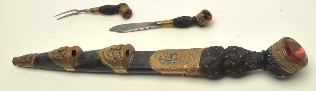 regiment). Early 20th century with orange cairngorm stones and knife and fork intact. In good to very good condition showing a plain blade. Maker marked “Anderson & Sons, George St., Edinborough. Est.: $1500-$3000