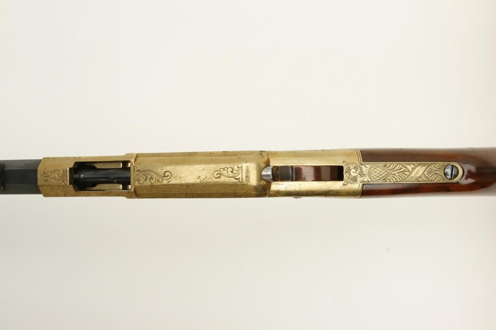 caliber, S/N E27 showing special period style engraving and engraved silver plaque which reads, “Presented to Lt. Col. George A. Custer, June 4, 1868 by 7th Cavalry”. See lot 170 where this rifle was sold in the Stembridge Armory collection on June 5, 2007. Made for television movie production according to knowledgeable parties. In near fine condition. (Modern) Est.: $1500-$3000