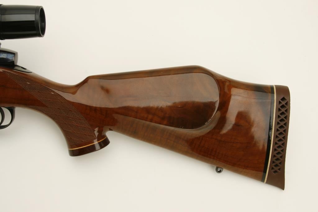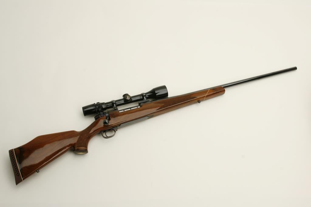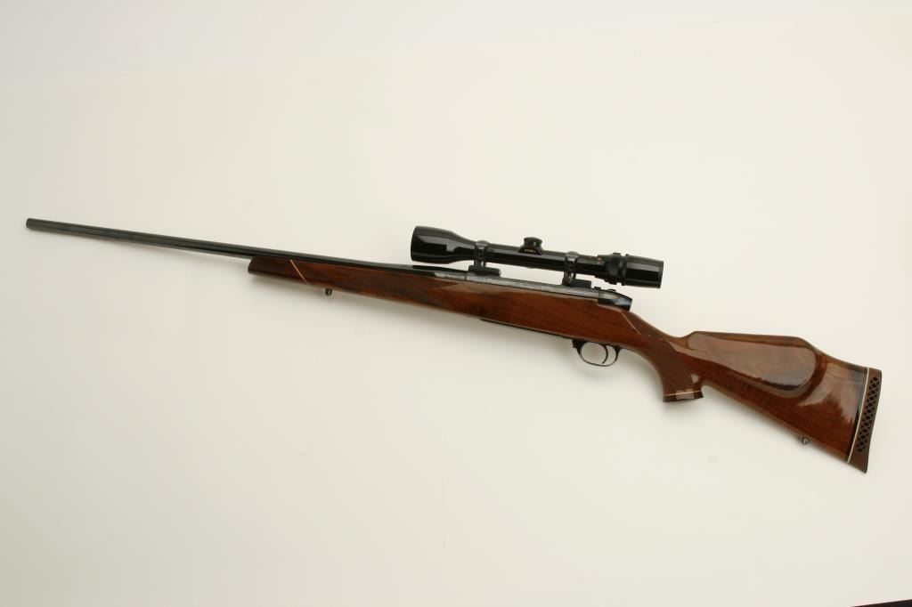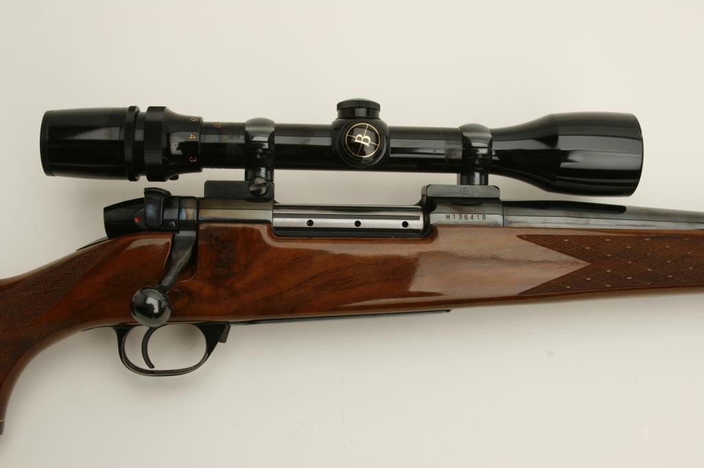 caliber, 26.5” barrel, blued finish, checkered deluxe wood stock, S/N H136418, in overall fine to excellent condition with fine bore, action, markings and stock. Mounted with a Bushnell ScopeChief VI scope with fine optics. (Modern). Est.: $900-$1,800.