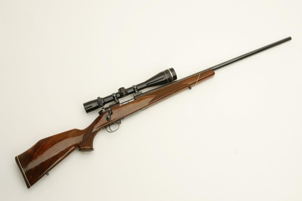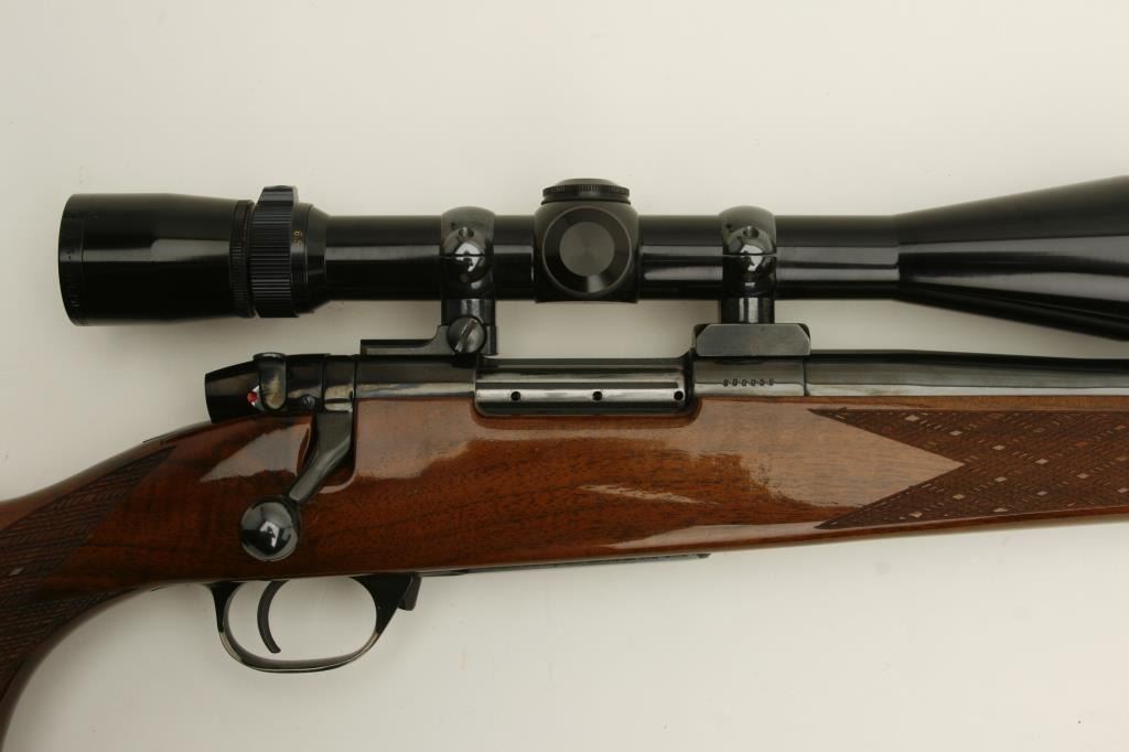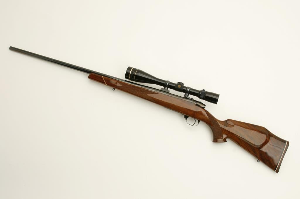 caliber, 26” round barrel, blued finish, deluxe grained checkered wood stock, S/N S00056, in overall excellent condition and mounted with a Leupold Vari-X III 6.5 x 20 scope. (Modern). Est.: $750-$1,500.