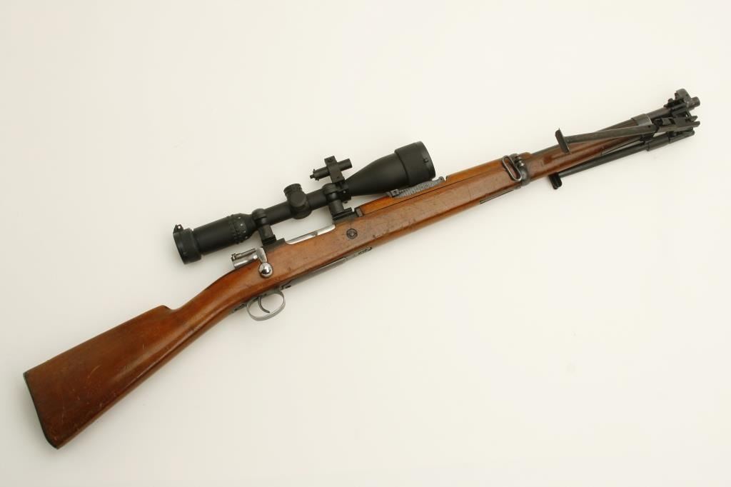 barrel, blued finish, import-marked, wood stock with later bi-pod and mounted with Famous Maker-marked 3-9X42 scope with crisp optics; S/N 2Z8593, in overall very good condition with very good bore, crisp action, good wood with scattered mars and scratches from carry and storage. (C&R). Est.: $300-$600.
