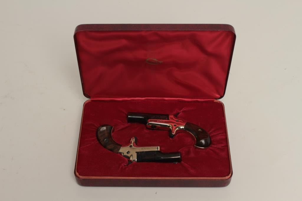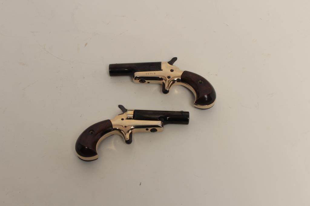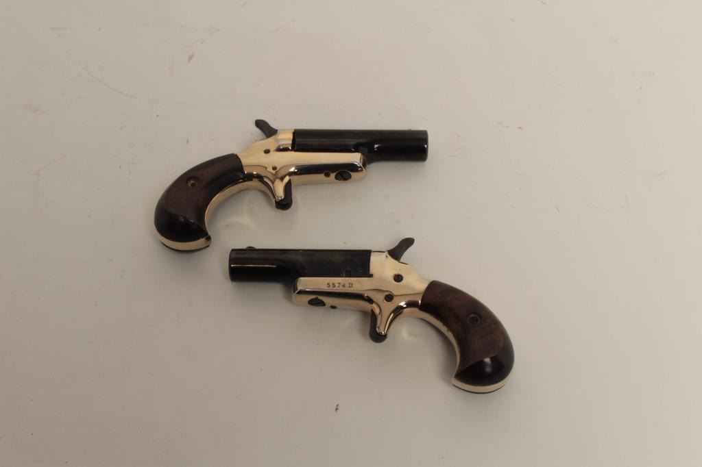 Lord Model derringers, .22 short caliber, 2.5” barrels, blued and nickel finish, wood grips, S/Ns 5574D and 5575D, in overall excellent condition. (Modern/PPT). Est.: $200-$400.