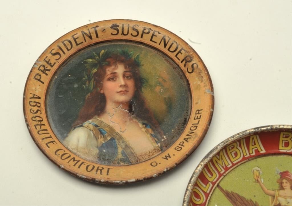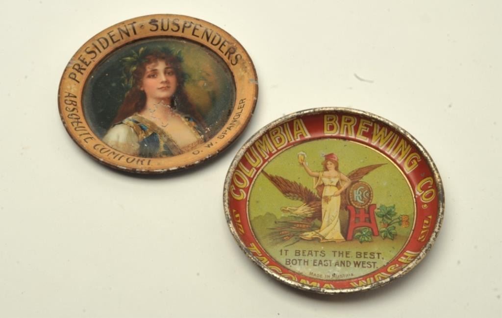Suspenders; one for the Columbia Brewing Co., Tacoma, Wash.; each approximately 4” in diameter. Est.: $200-$250.