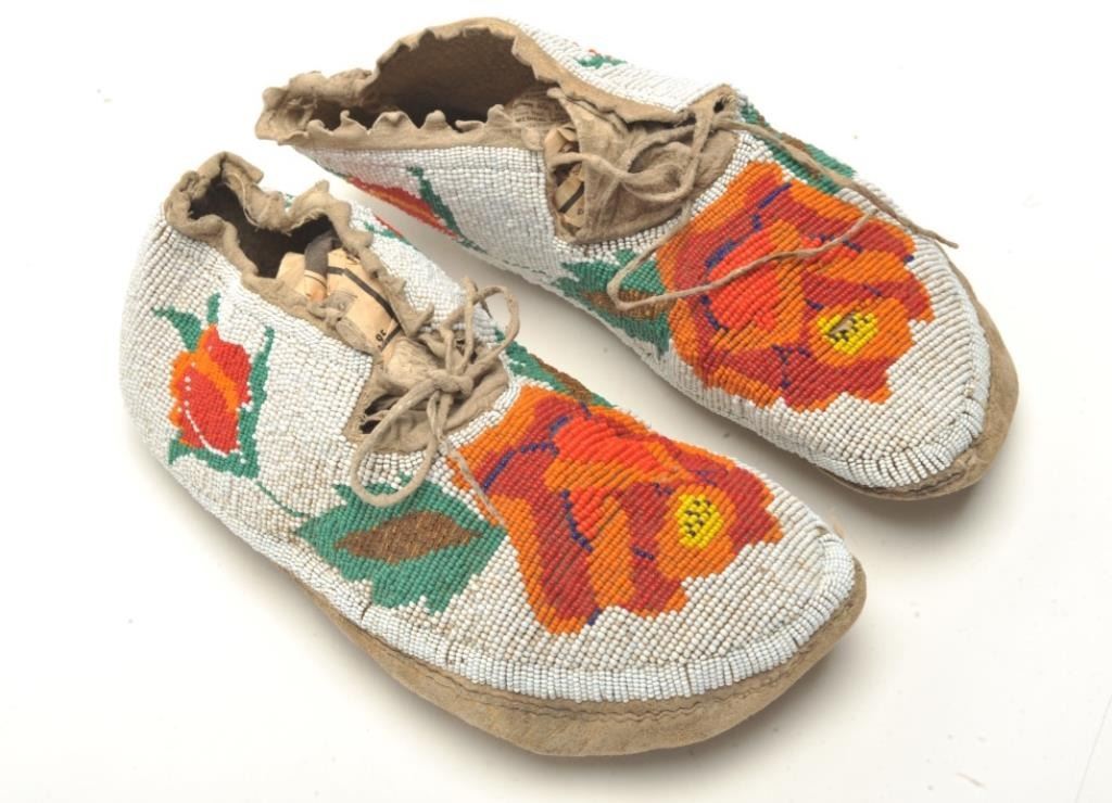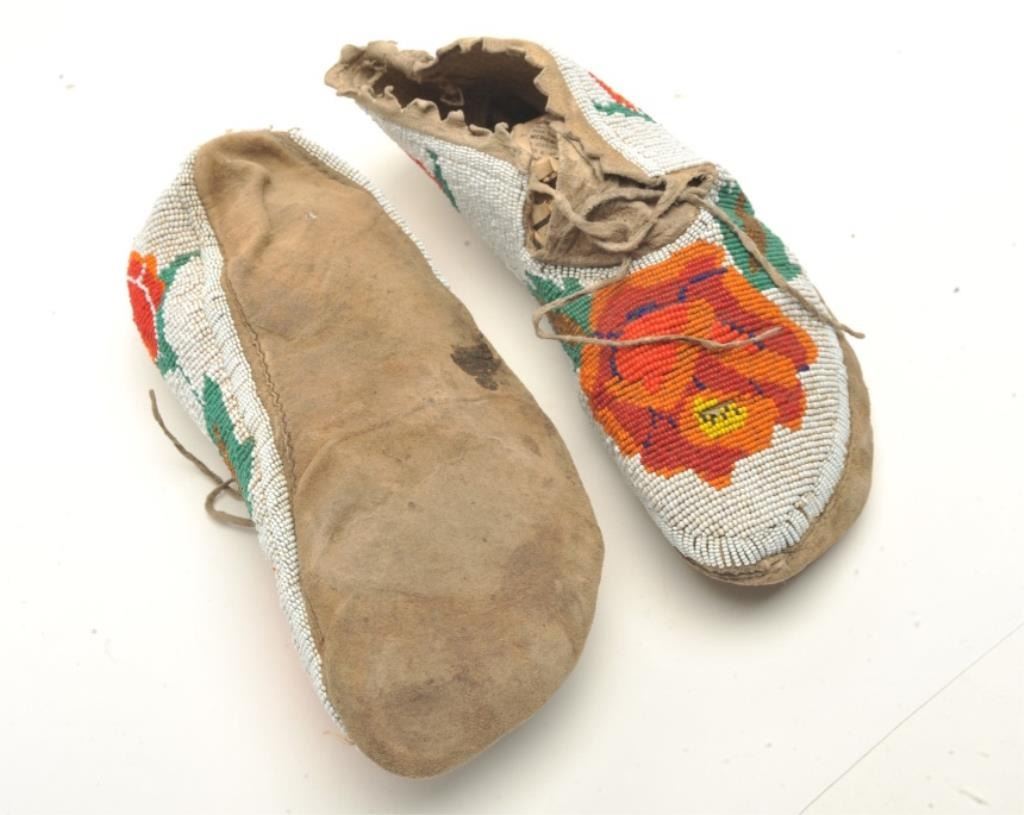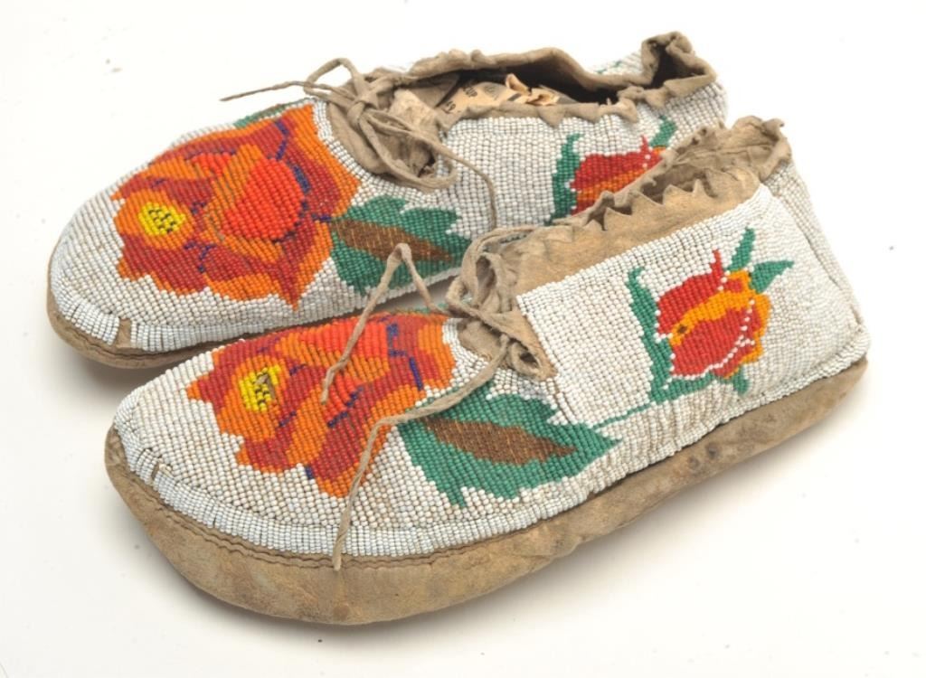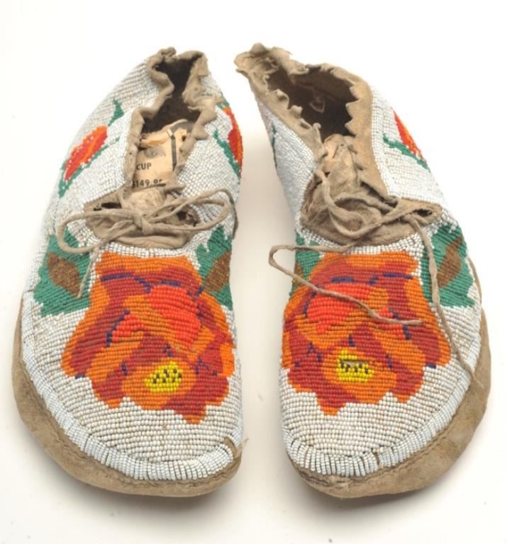 Lot 632 Pair of beaded moccasins with roses probably N.W.