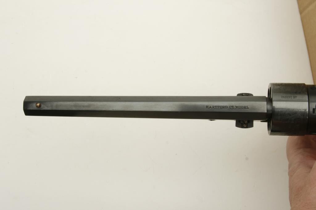 .44 caliber, 7.5” barrel, blued and case hardened finish, wood grips, S/N D79296, in like new condition. (Percussion). Est.: $100-$200.