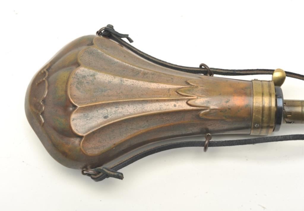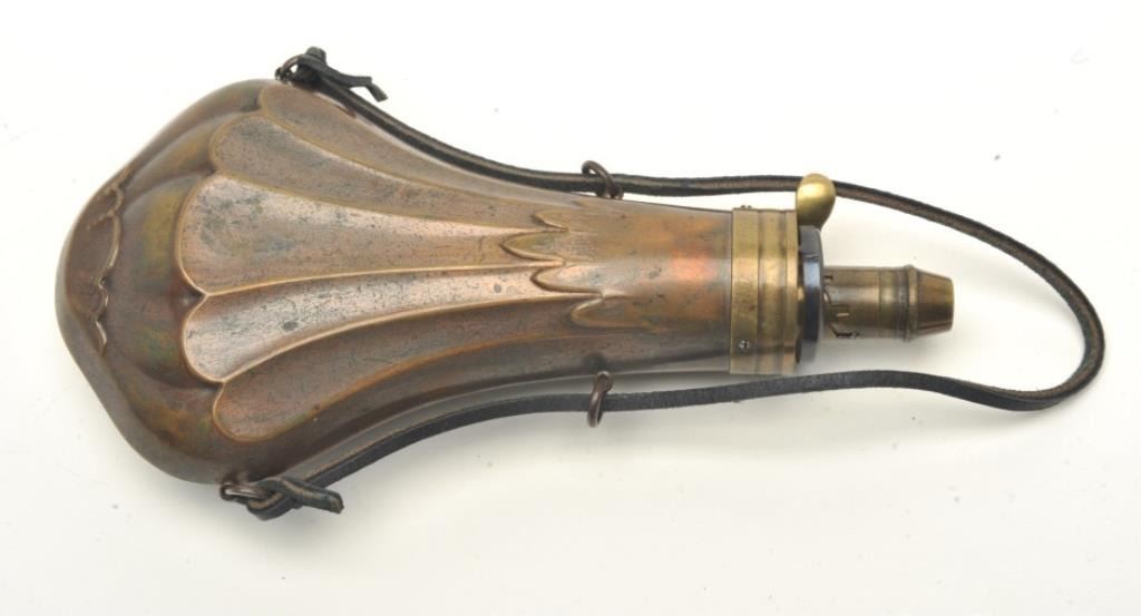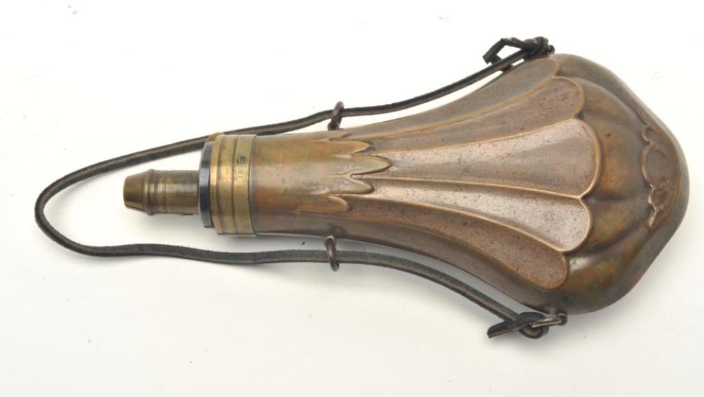 Lot 639 Mid-19th century powder flask marked “Dixon & Sons”.