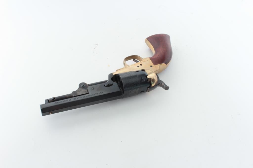 .44 caliber, 5” octagon barrel, brass frame, blued finish, wood grips, S/N A89745, in excellent overall condition. (Percussion). Est.: $100-$200.