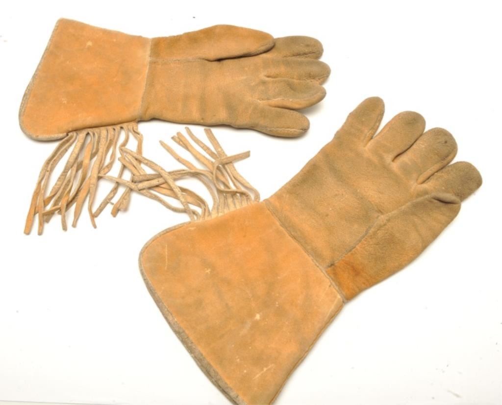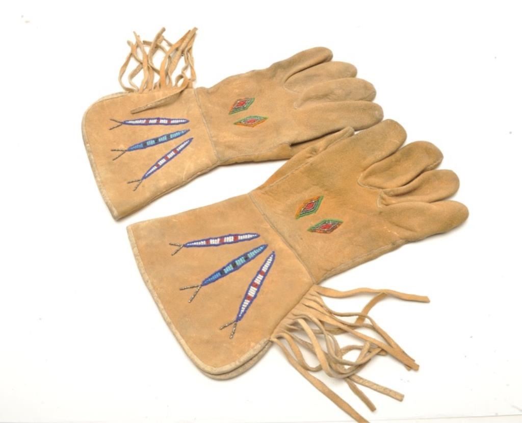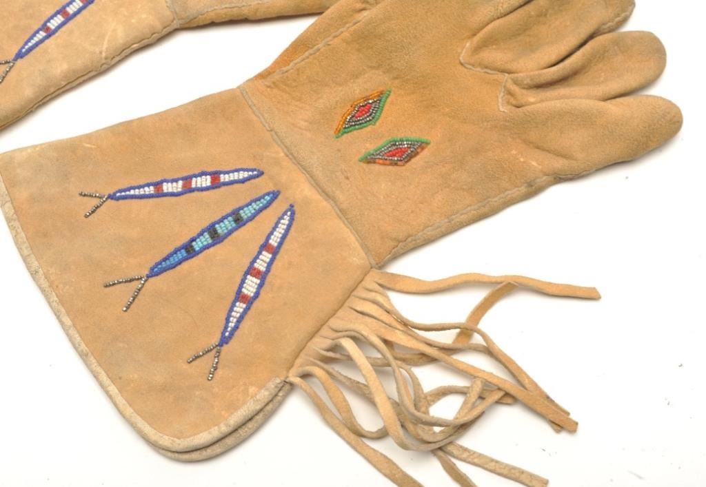Lot 658 Indian tanned leather gauntlets with beadwork and fringe