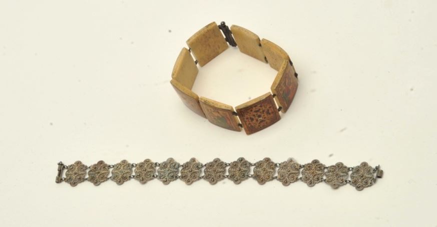 Lot 685 Antique Philigre Silver Bracelet along with a painted