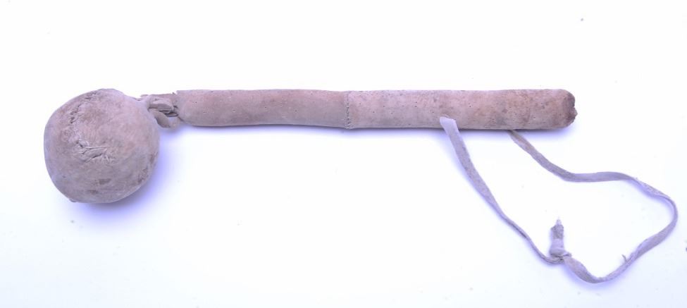Lot 686 Apache skull crusher constructed of tanned hide over