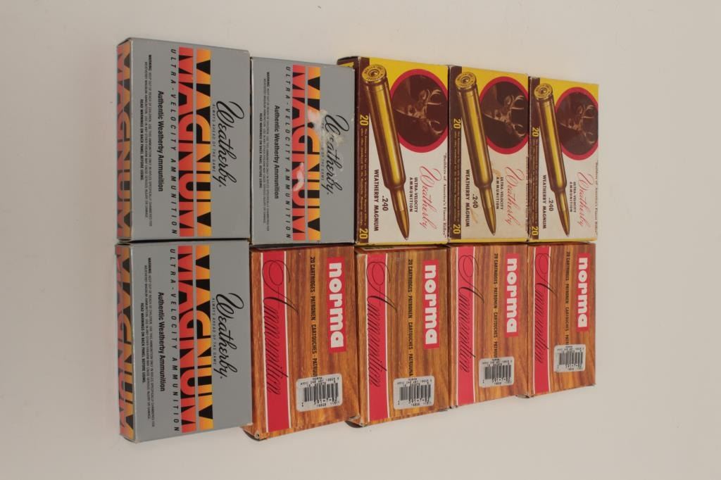 Weatherby (6) .240 Weatherby Magnum caliber ammunition. Est.: $300-$600.