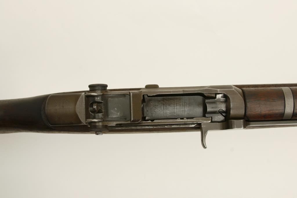 caliber, serial #2253979. The rifle is in good condition with a 24” barrel. The barrel retains the majority of its military finish and is not dated. The receiver retains a significant amount of its military finish. The smooth wood stock is in good condition, showing considerable use and wear with no visible cartouches. The stock includes sling swivels and ends with a checkered steel butt plate. The bore is good, the action crisp and the markings are sharp. (C+R) Est.: $600-$1,200.