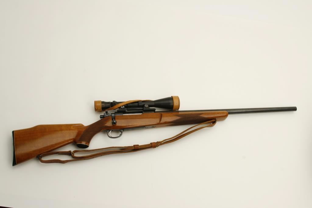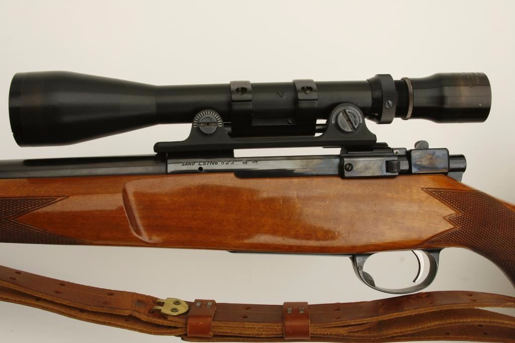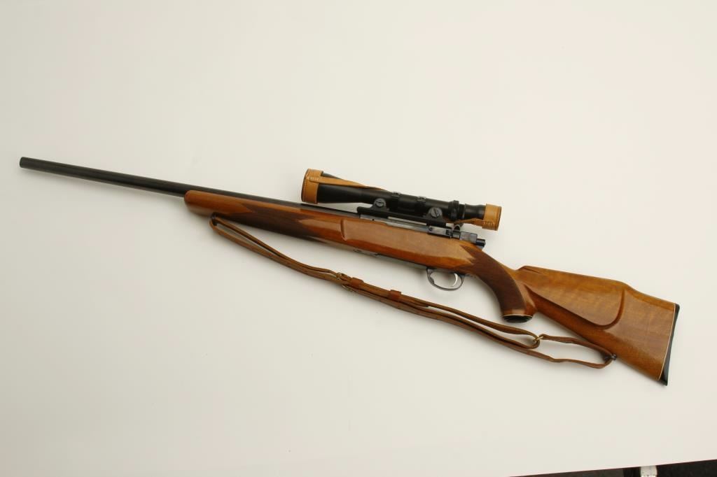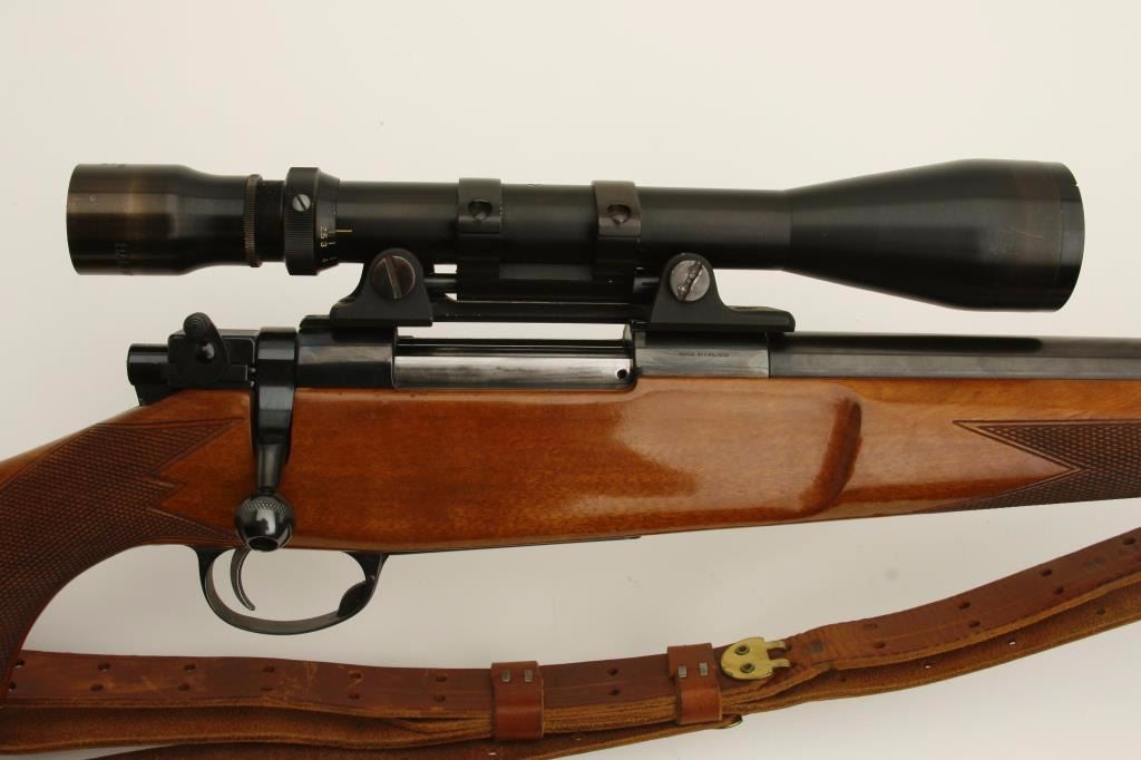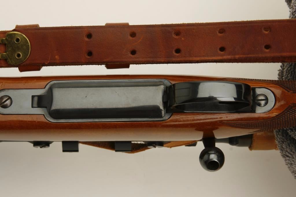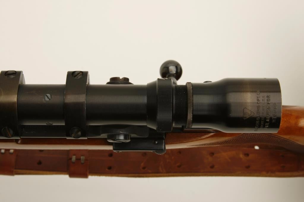 finish, checkered wood stock, leather sling, S/N L57623, in overall near fine condition with fine bore and mounted with a vintage Bausch & Lomb scope displaying beautiful optics. (Modern). Est.: $600-$1,200.
