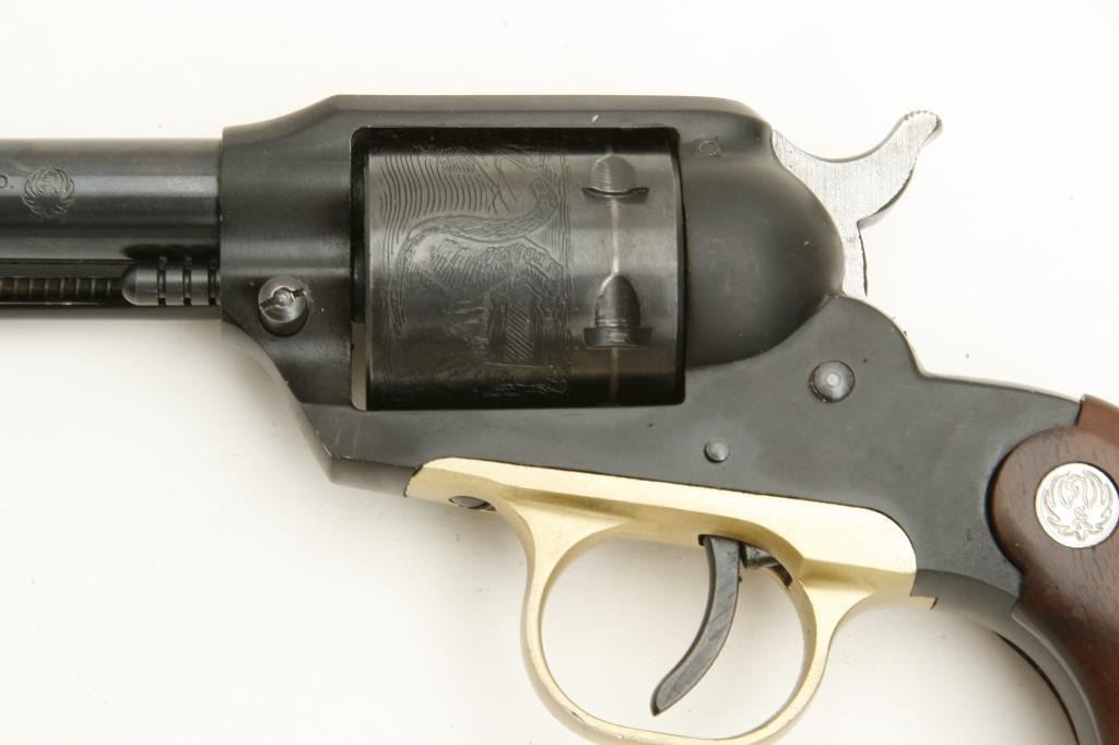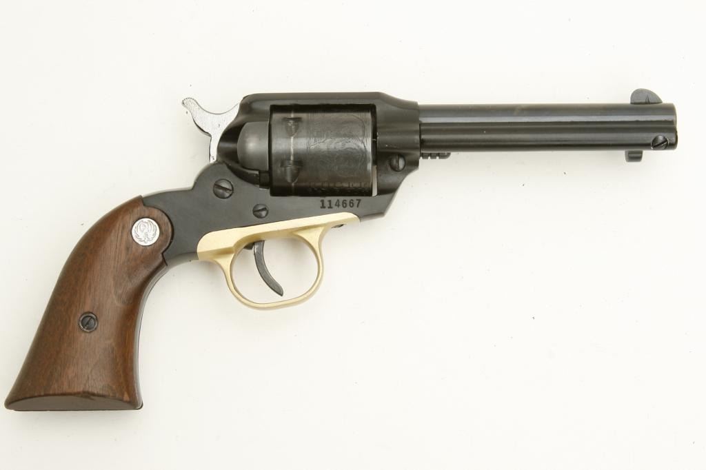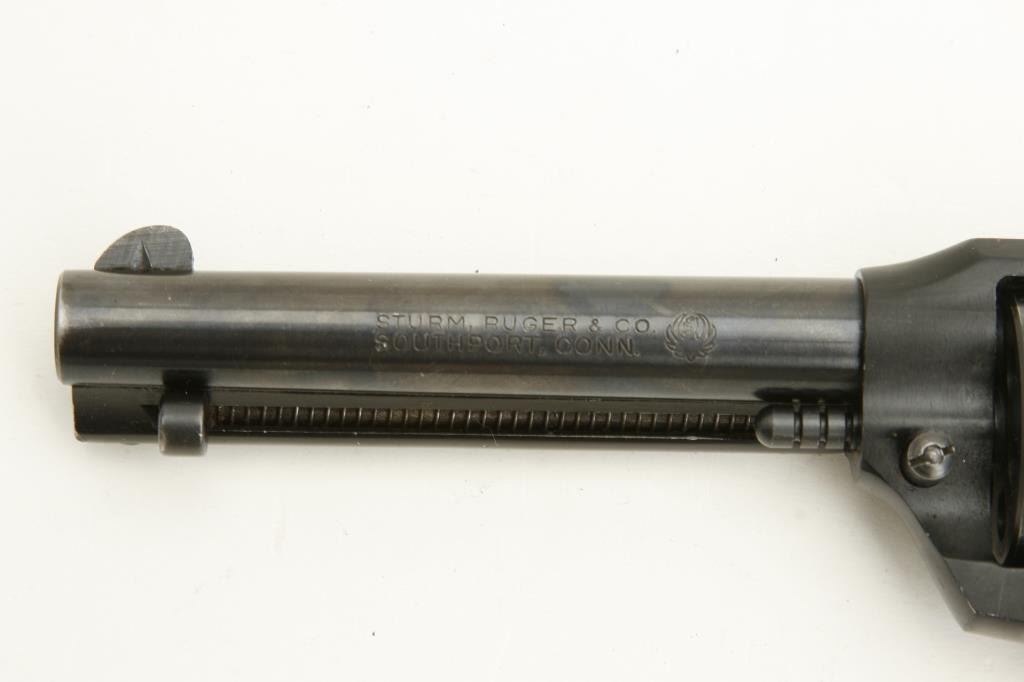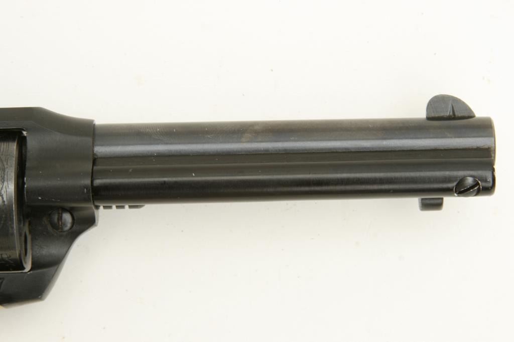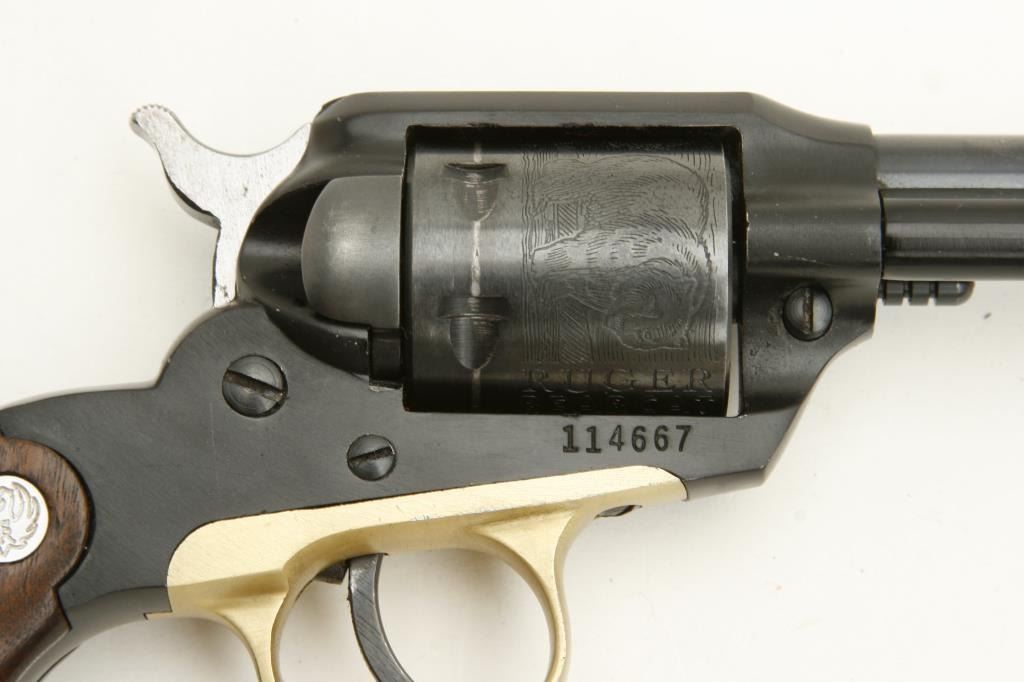 barrel, wood grips, S/N 114667. This revolver remains in very good condition showing 98% of its finish remaining with slight wear at the muzzle and some handling marks and also an index line on the cylinder. The grips show some dings and scratches and the Ruger medallions remain intact. The action is tight and the bore is very good. (Modern/PPT) Est.: $250-$500