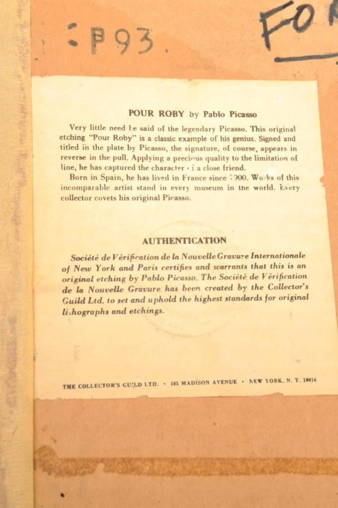 Lot 770 Etching of face by Picasso titled “Pour Roby”
