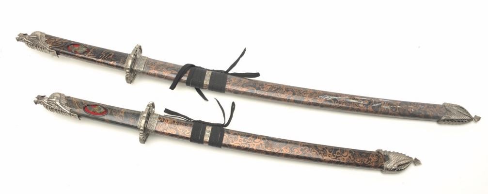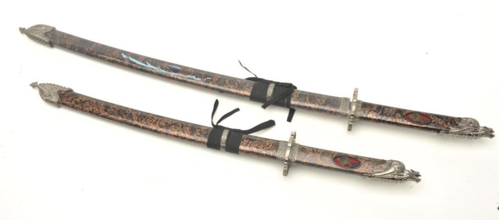 Lot 783 Lot of 2 reproduction Chinese swords with scabbards,