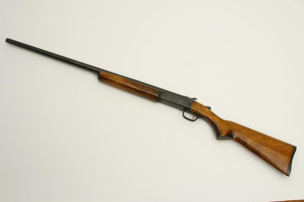 serial #C291030. The shotgun is in very good overall condition with a 28” blued barrel with a steel bead front sight. The barrel retains nearly all of its blued finish while the receiver retains the majority with some flaking and light surface rust noted. The smooth wood stocks are in good condition with an old coat of varnish added during the period of use. The butt stock ends with a hard plastic butt plate and a 14”LOP. (C+R) Est.:$125-$250.