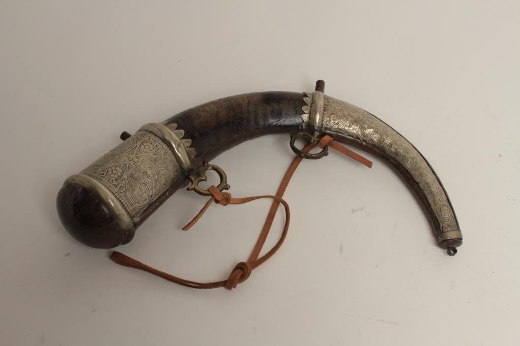 Lot 848 Fancy Mid-Eastern powder flask, approximately 15” overall.