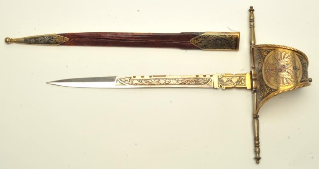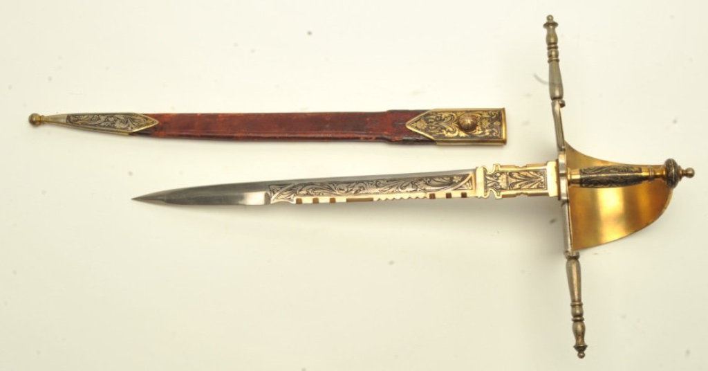 Lot 851 Ornate left handed dagger from Toledo, Spain; 50-75