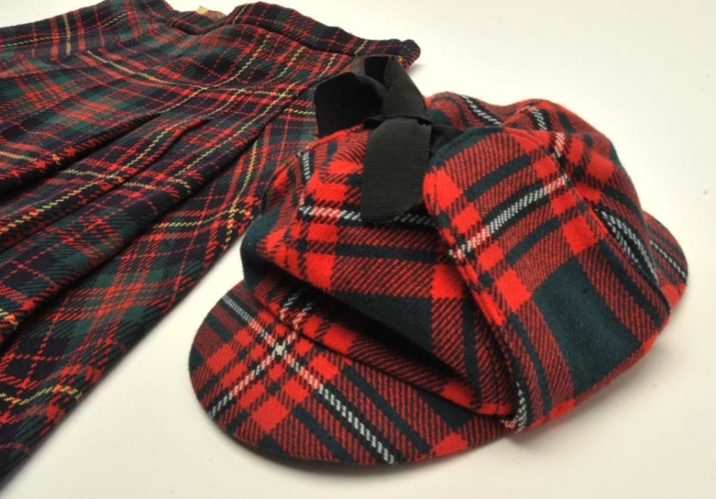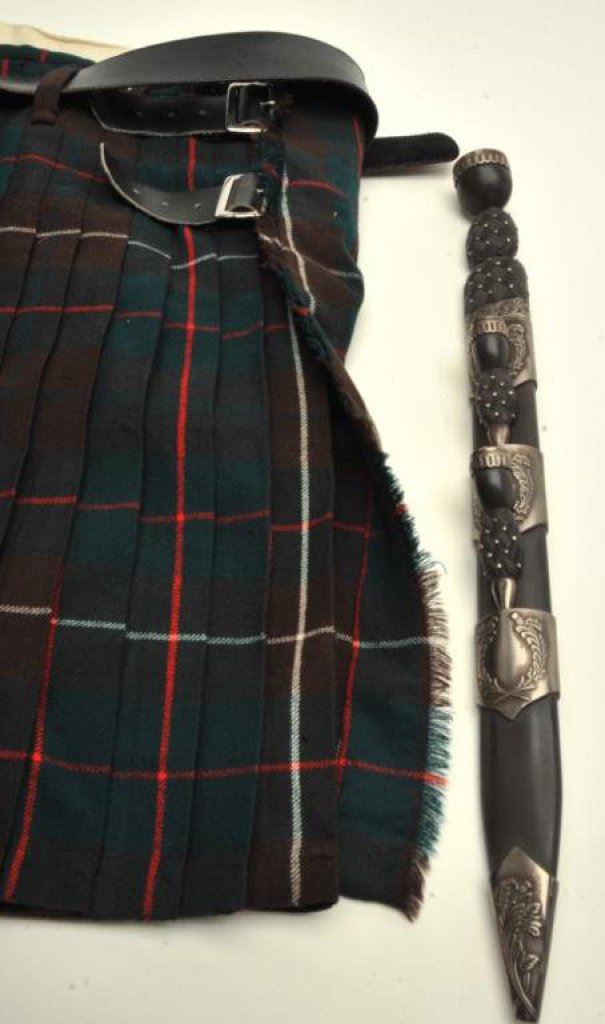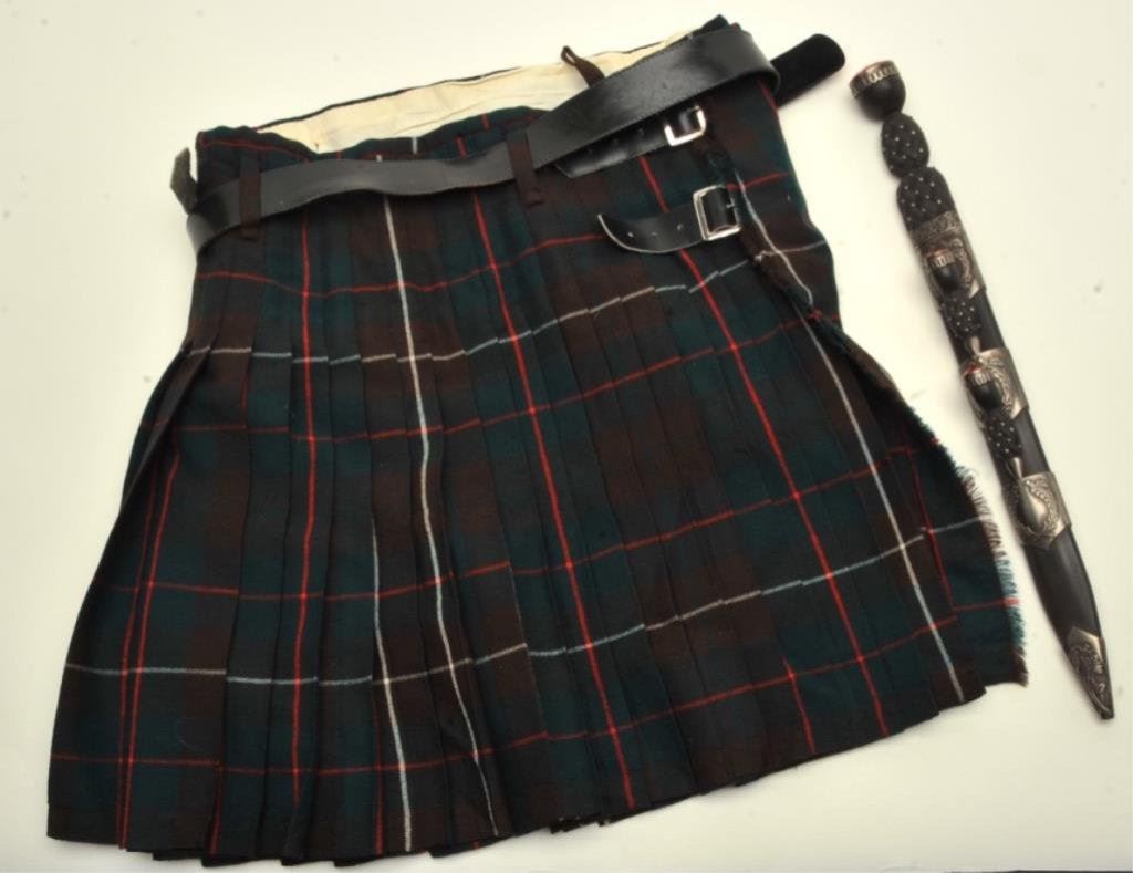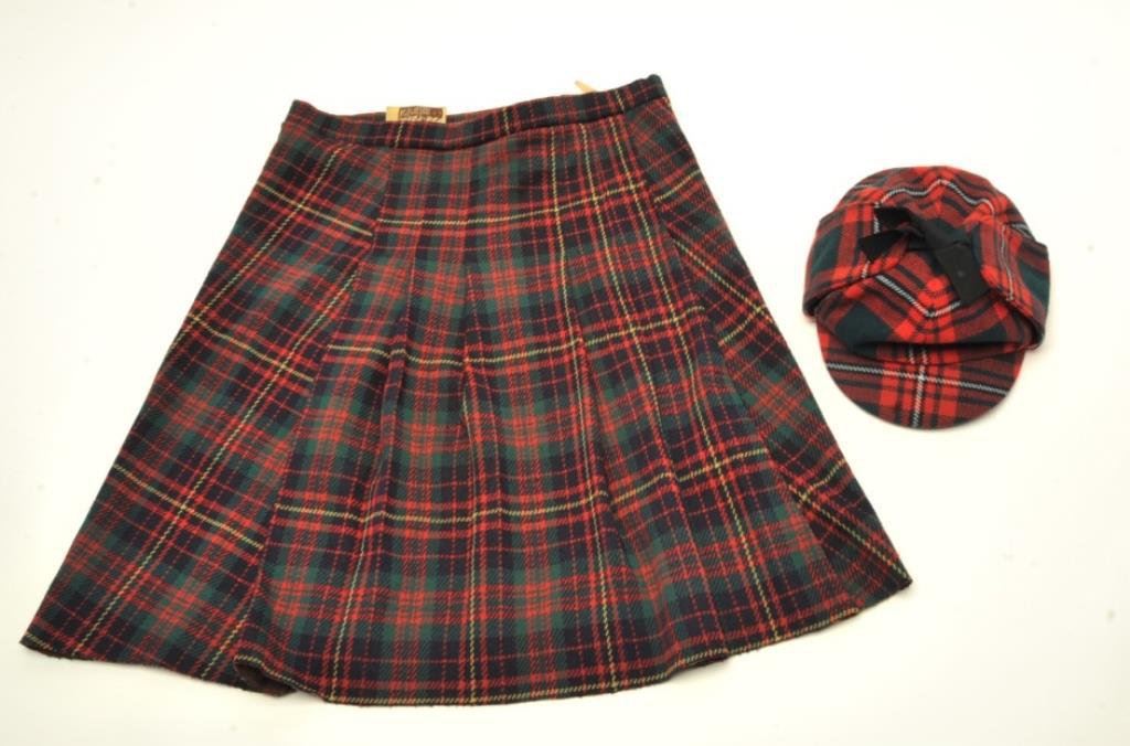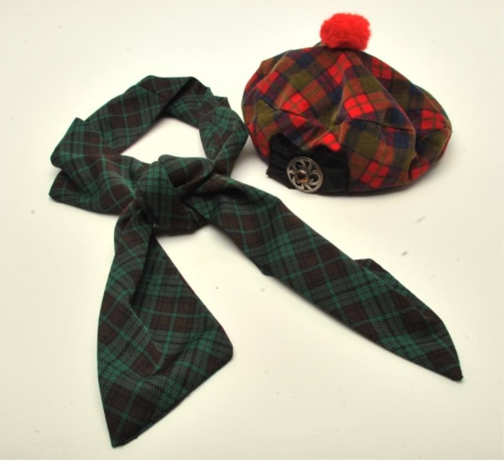 and sheath, a Scottish made kilt by Lawrie’s of Scotland (all wool and over $400 replacement), a belmorah (hat) with label indicating handmade, a child’s kilt and a deer stalker hat. Est.: $200-$400.