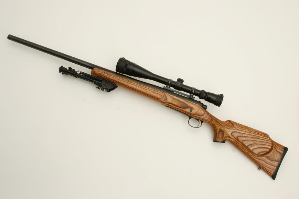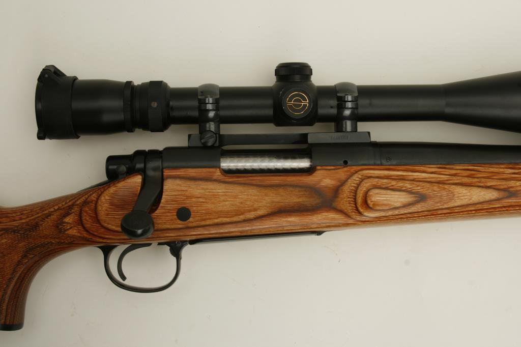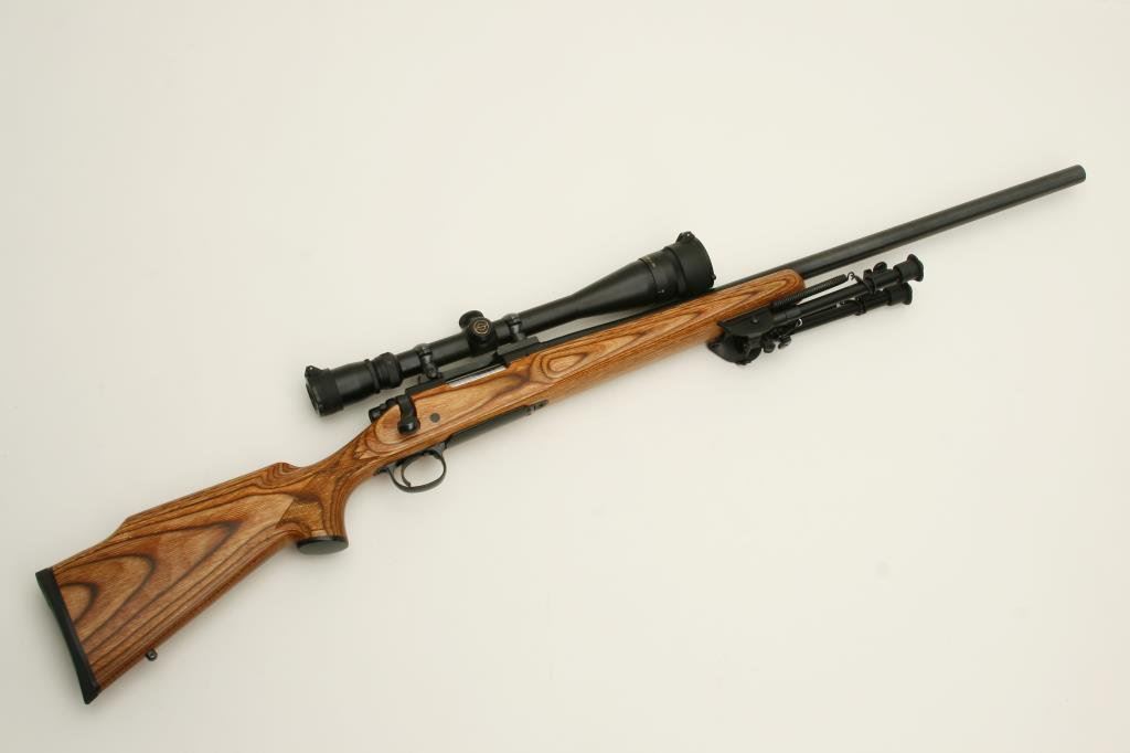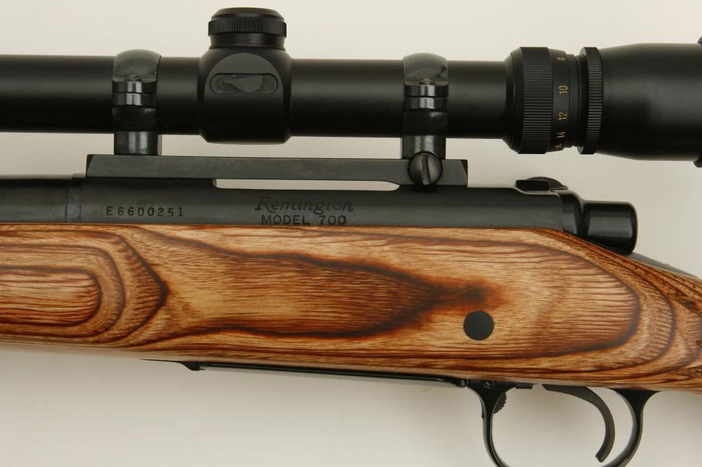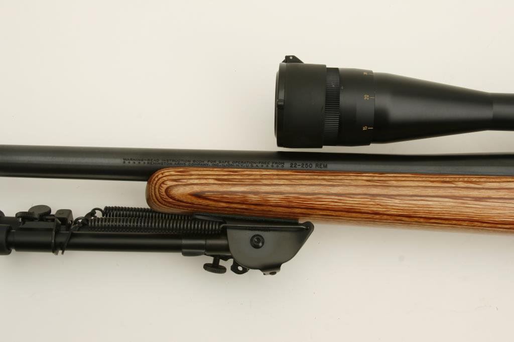 caliber, serial #E6600251. The rifle is in very good overall condition with only minor handling marks noted. The rifle has a 26” Heavy bull barrel and Harris style bi-pod attached. The barrel and action retain nearly all of their blued finish showing little use. The finely checkered laminate stock is in very good condition with only marks associated with storage observed. The butt stock ends with a black, Remington marked rubber butt pad. The bore is very good, the action crisp and the markings are sharp. The rifle is topped with a Redfield one-piece mount and a Simmons 6.5x20 variable power scope. (Modern) Est.: $350-$700.
