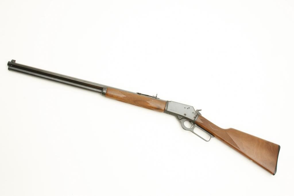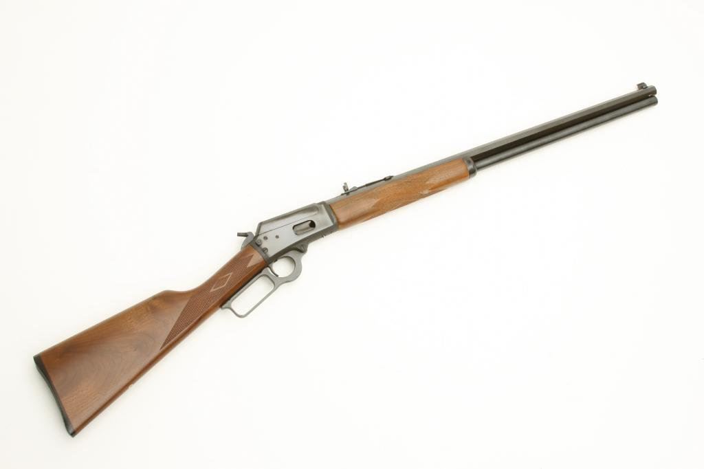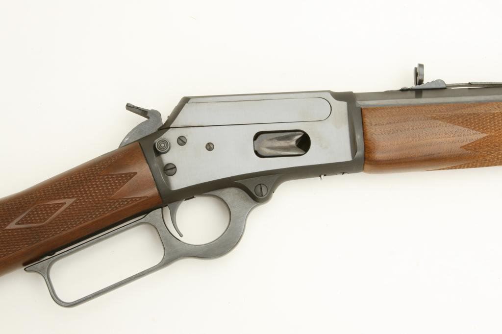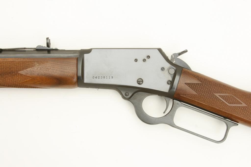 Colt caliber, serial #04038119. The rifle is in nearly new overall condition showing only minimal handling and storage marks. The rifle features a 24” blued, octagon barrel with a blade front and standard adjustable rear sights. The barrel, magazine and action retain nearly all of their blued finish, while the checkered wood stocks are in excellent condition as well. The butt stock ends with a Marlin marked, hard plastic butt plate. The bore is as new, the action crisp and the markings are sharp. (Modern) Est.: $400-$800.