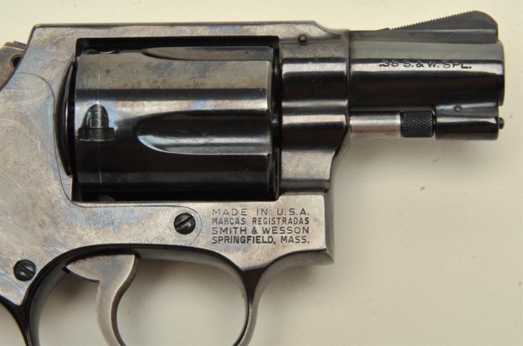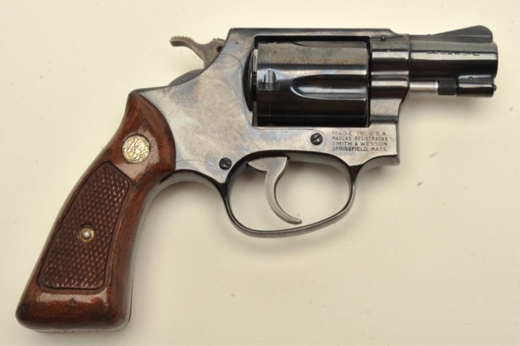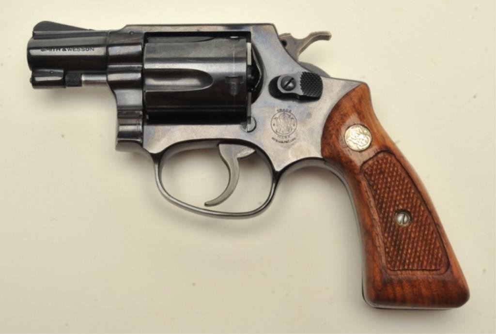 DA revolver, .38 Special caliber, 2” barrel, blued finish, checkered wood medallion grips, S/N J630740, in fine condition overall with some minor high point wear, fine bore, crisp action and sharp markings. (Modern/PPT). Est.: $500-$1,000.