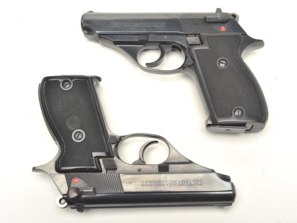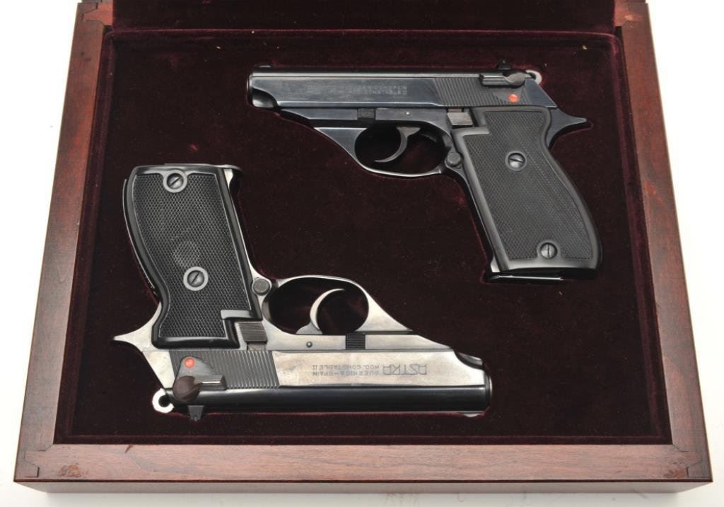 II DA semi-automatic pistols, .380 caliber, 3.5” barrels, S/Ns K4826 & J0520, blued finish, checkered plastic grips; both in overall excellent condition overall. Accompanied by one factory hard case and one factory cardboard sleeve with inserts. (Modern/PPT). Est.: $700-$1,400.