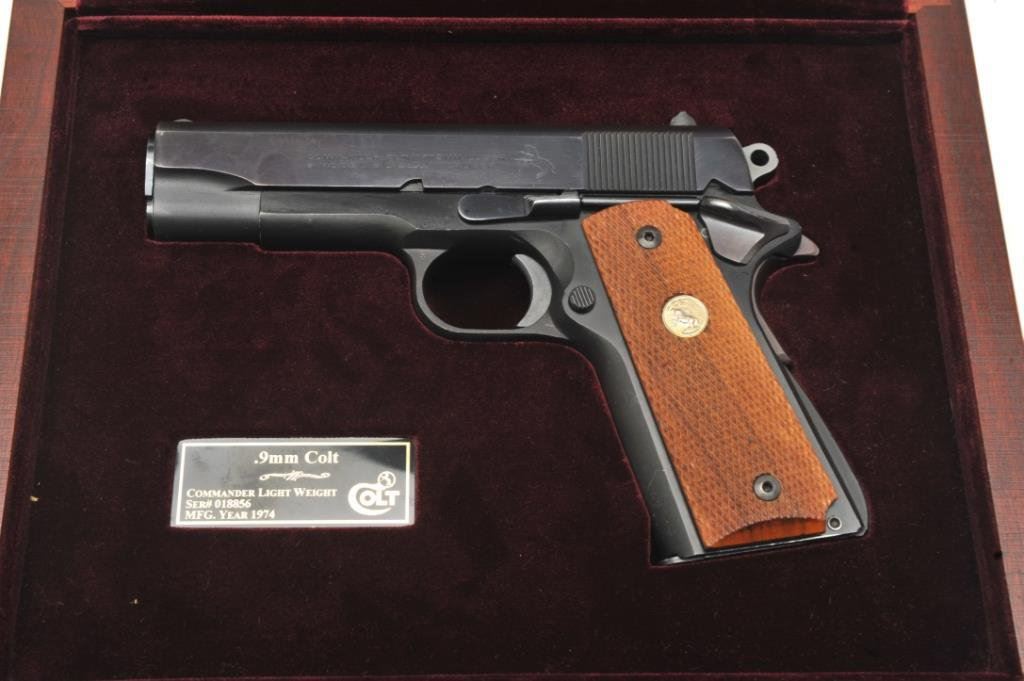 Lot 985 Custom wood cased Colt Commander Lightweight Model semi-automatic