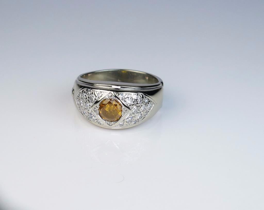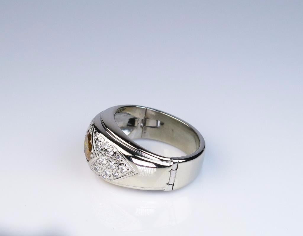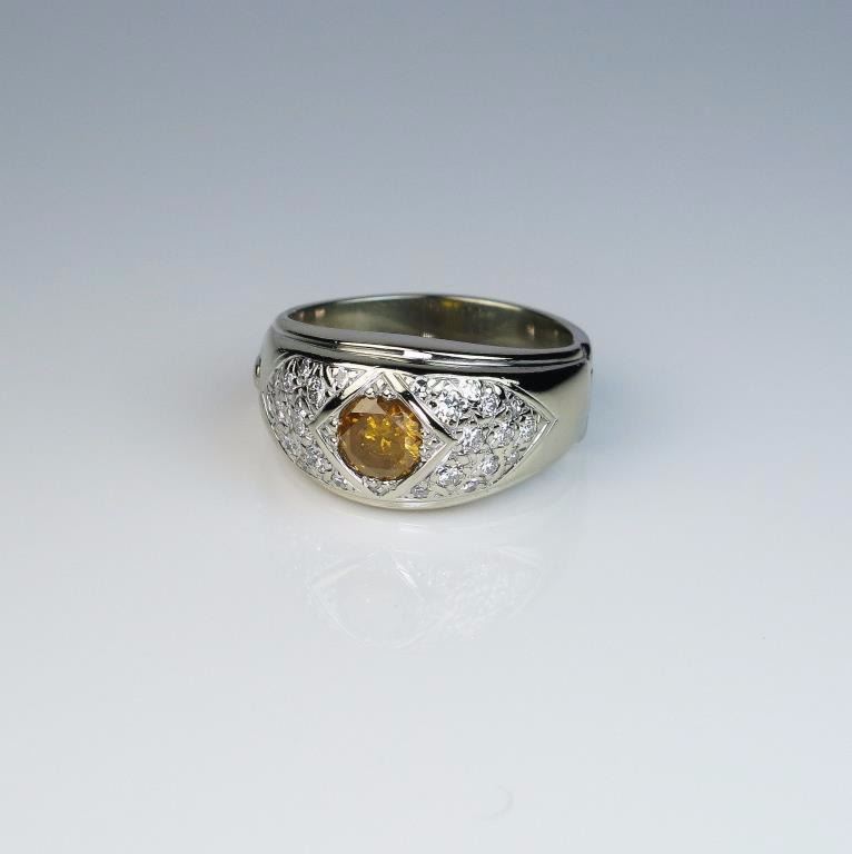 fancy natural Orange diamond weighing 0.75 carats and 26 round diamonds weighing approx. 0.80 carats of F-G colors and VS/SI clarity in a 14 white gold adjustable shank setting. Retail $3,000-$4,000 Estimates $1,800-$2,500