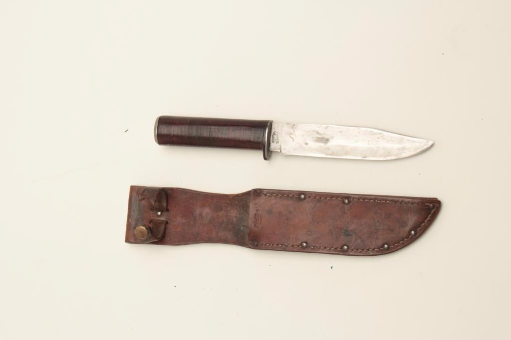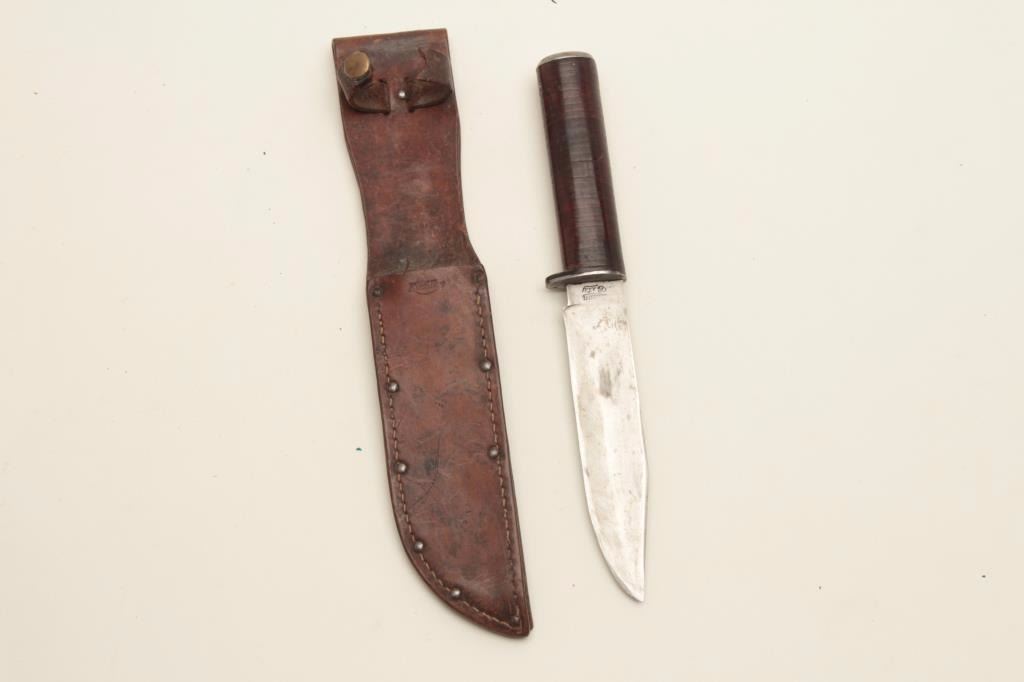 Lot 1021 Queen City Cutlery knife with scabbard marked “Kinfolks”.