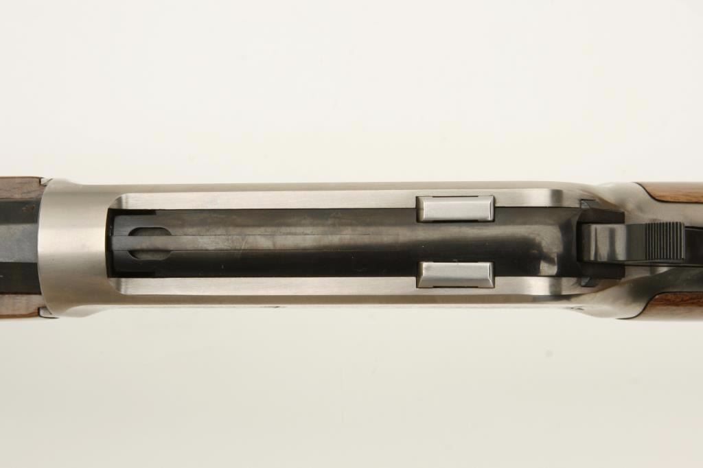 lever action rifle, .45-70 Govt. caliber, 26” octagon barrel, blued and bright finish to receiver that also displays gold ornamentation and “One of 2000”; checkered wood stocks, S/N 01170MT1889, in overall like new condition with factory black cardboard two-piece box and inserts. Consecutive number to previous lot. (Modern). Est.: $1,500-$3,000.