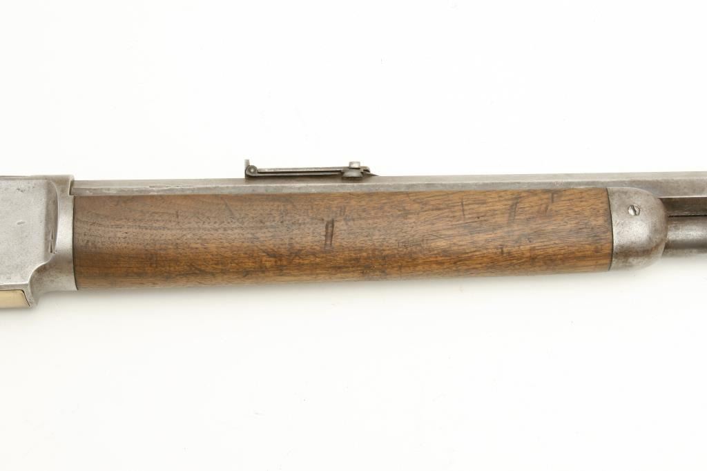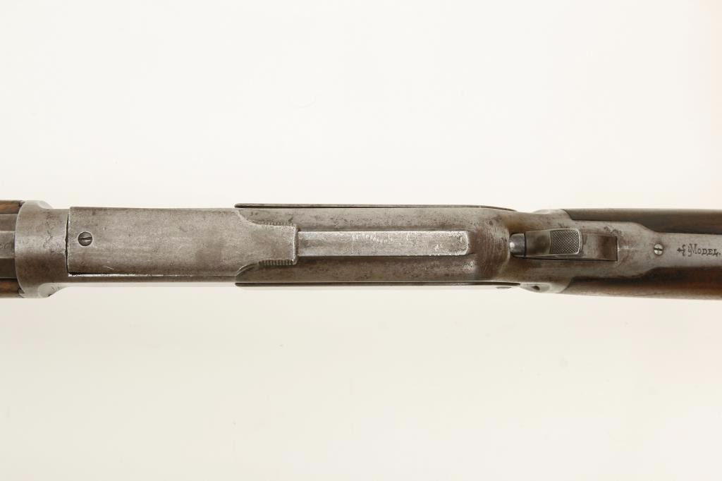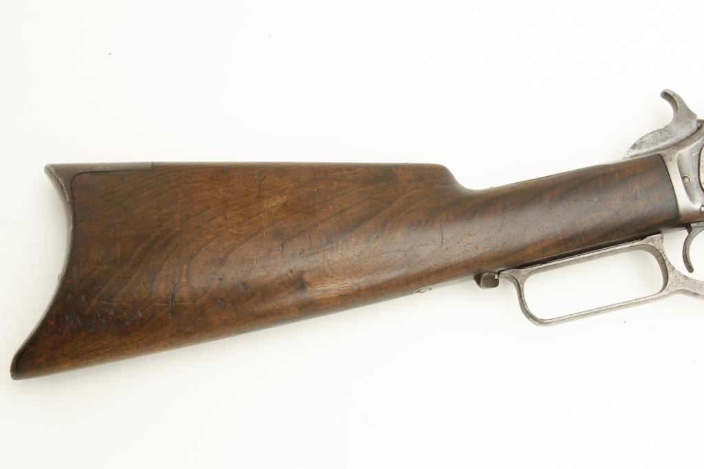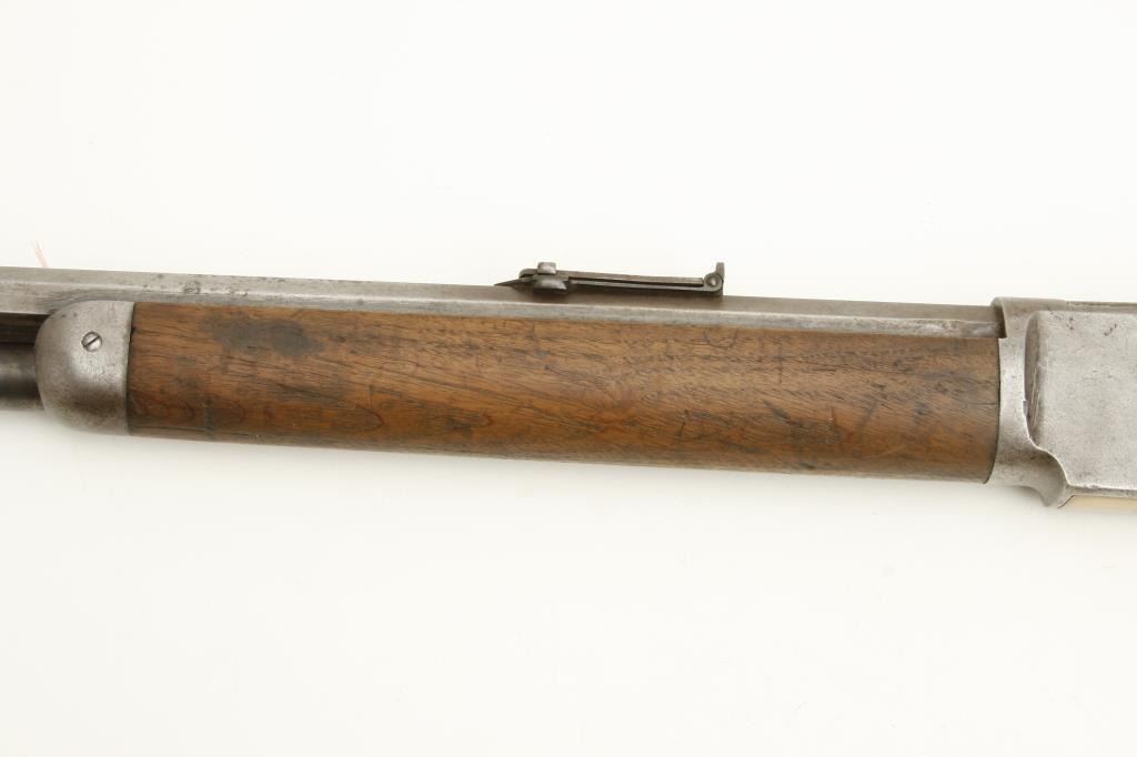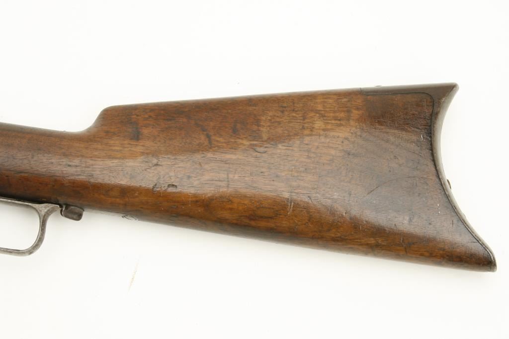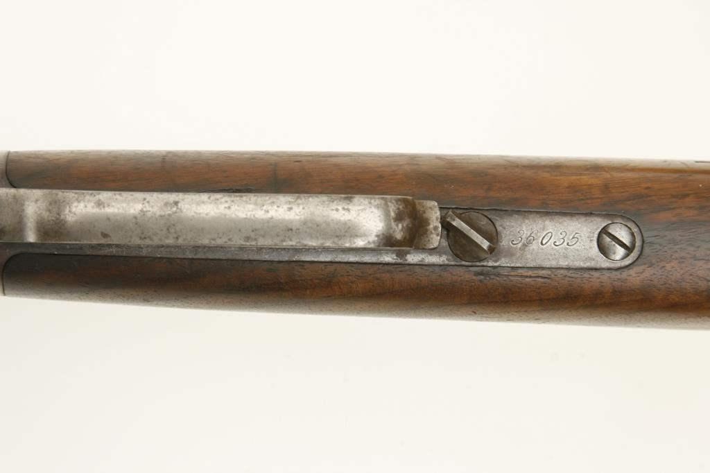 octagon barrel shortened to 24.5”, wood stocks, S/N 36035, in overall good condition showing a grey/brown patina to metal surfaces with scattered old spots of erosion; good action, good markings, fair bore only, loading tube band shows prior tightening, good wood stocks overall with some flame graining to butt stock. (Antique). Est.: $1,200-$2,400.