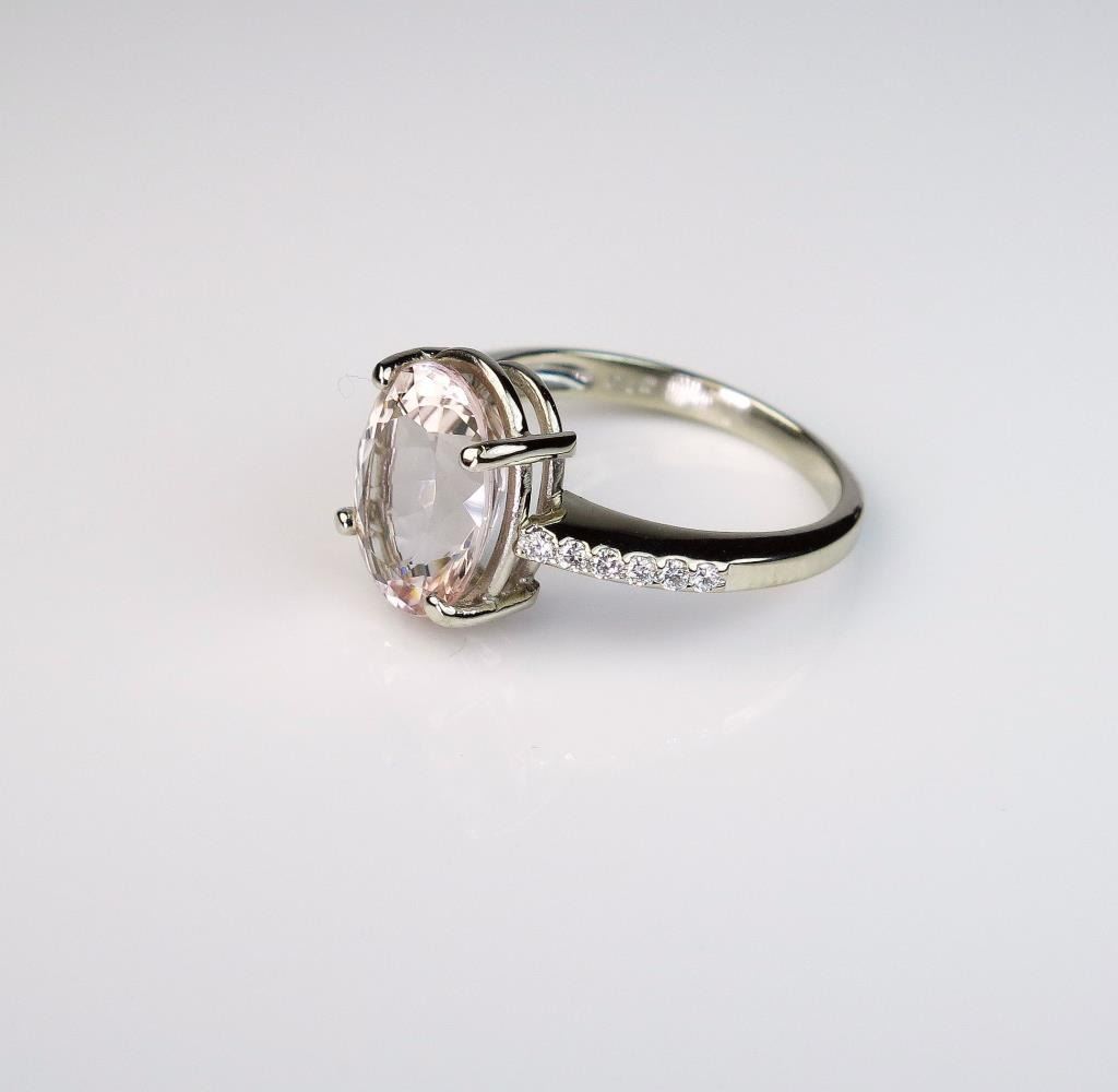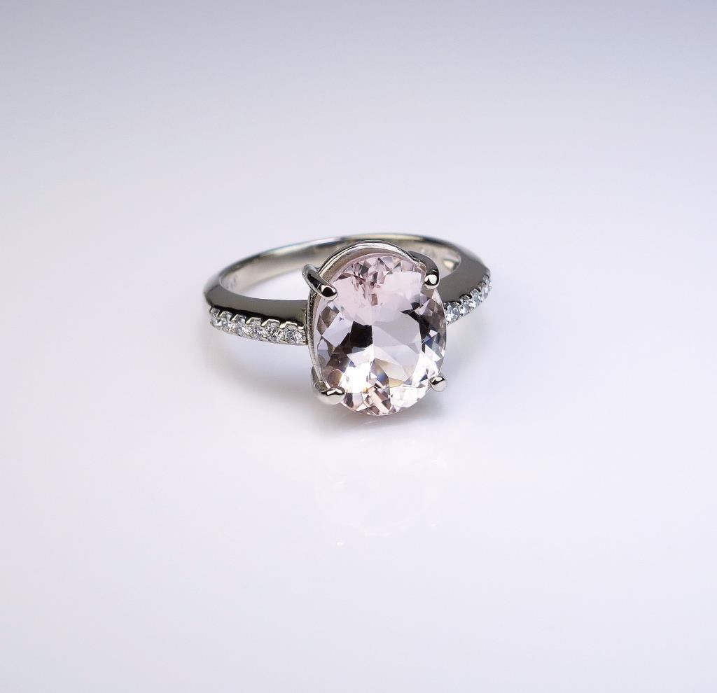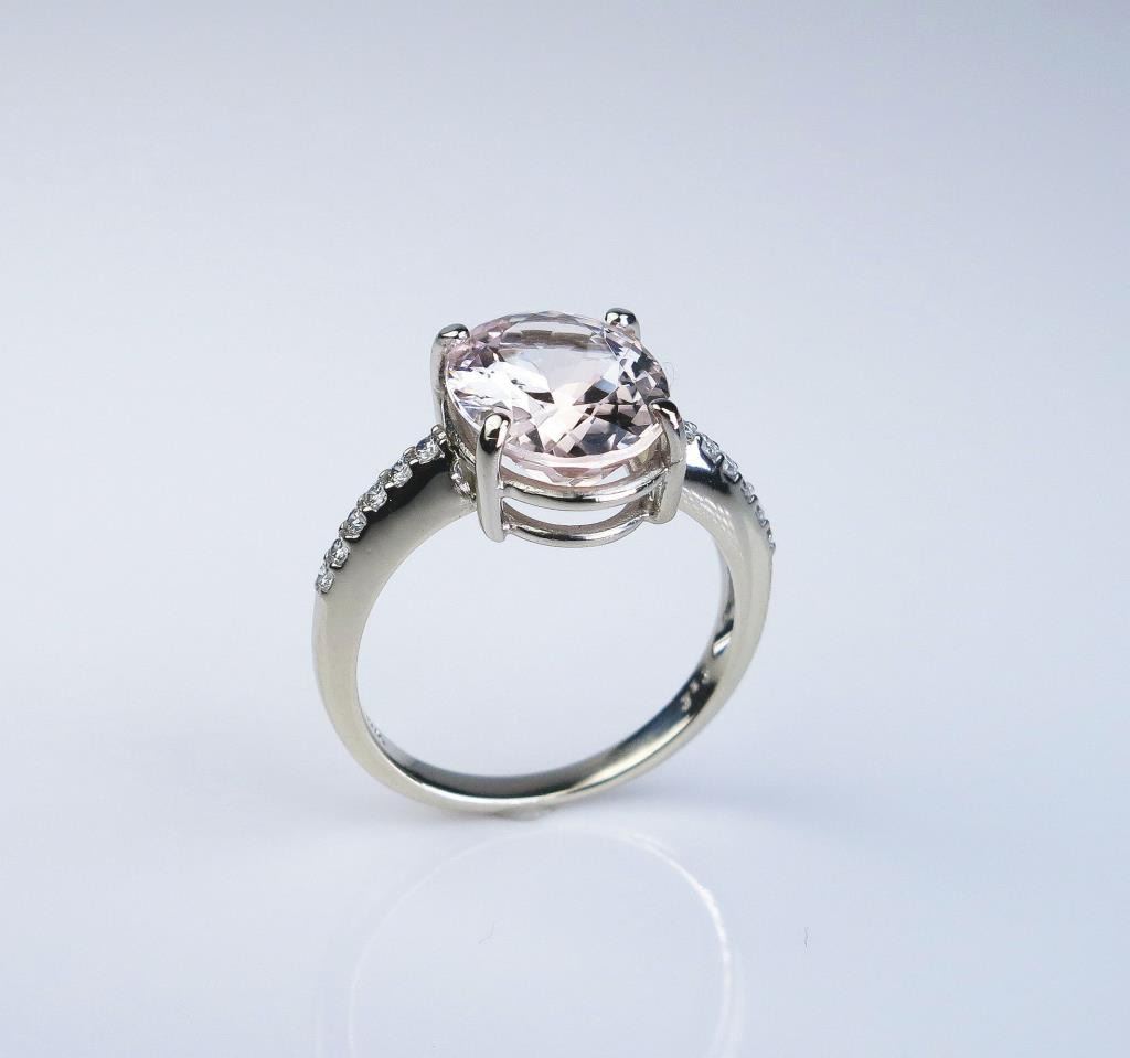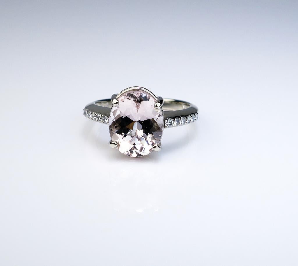 color Morganite and 12 ‘IDEAL ‘cut diamonds weighing approx. 0.30 carats of F-G colors and VVS/VS clarity in a 14 karat white gold setting. Estimates $1,500-$2,000