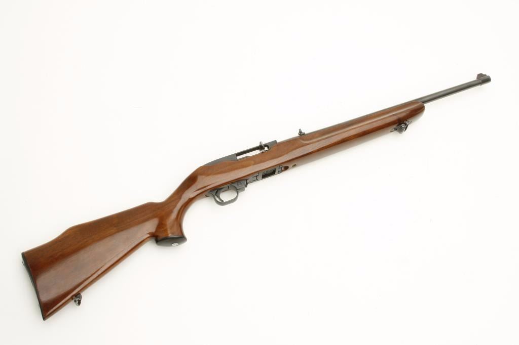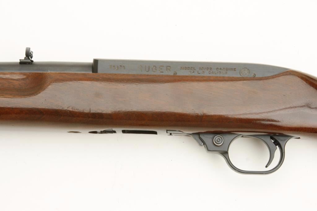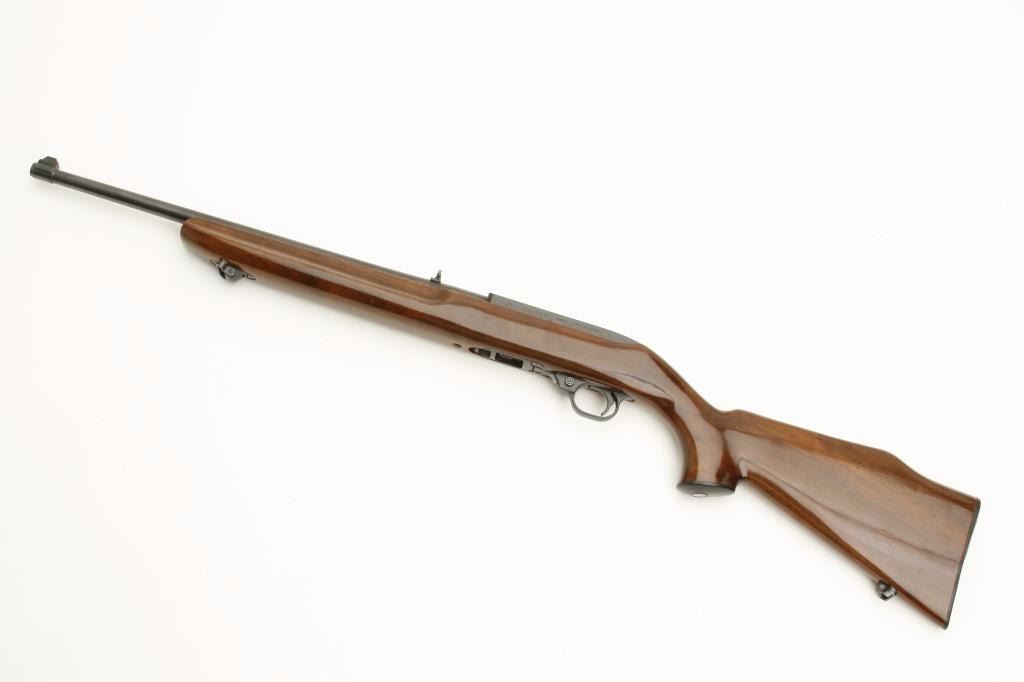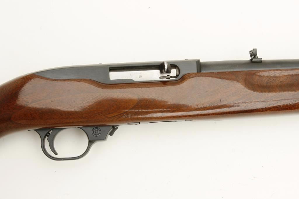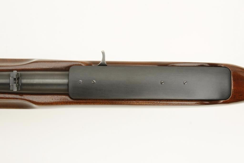 pistol grip cap and butt plate and finger grooves in the fore end. A nice early Ruger with what was purported to be a factory custom stock which is not verified. In very good condition. 90%-95% overall. (Modern) Est.: $250-$500