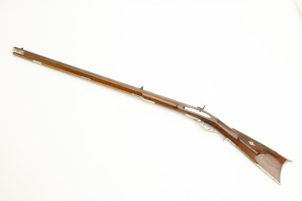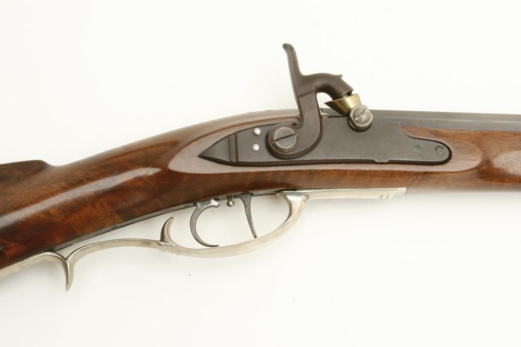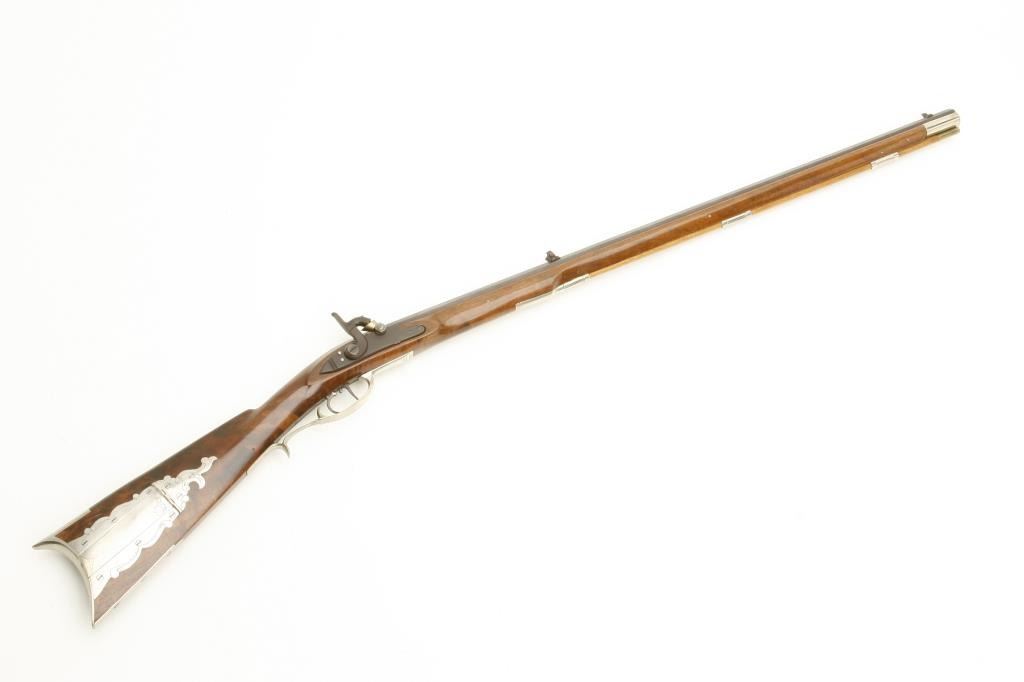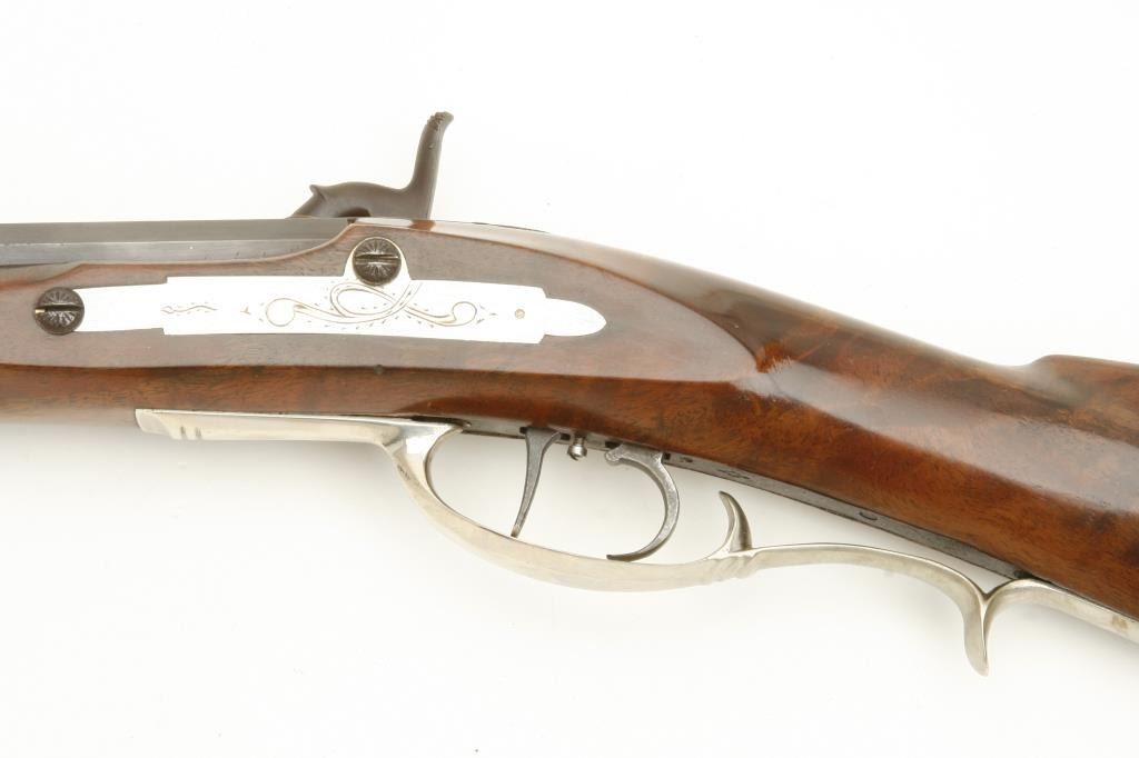 style with silver patch box and mounts signed “C. Olouson”. Measures 45” overall with a 30” octagon barrel of approximately .44 caliber rifled. Shows high quality throughout and in fine condition with very little if any use. Would cost many thousands to custom order. Est.: $1000-$2000+