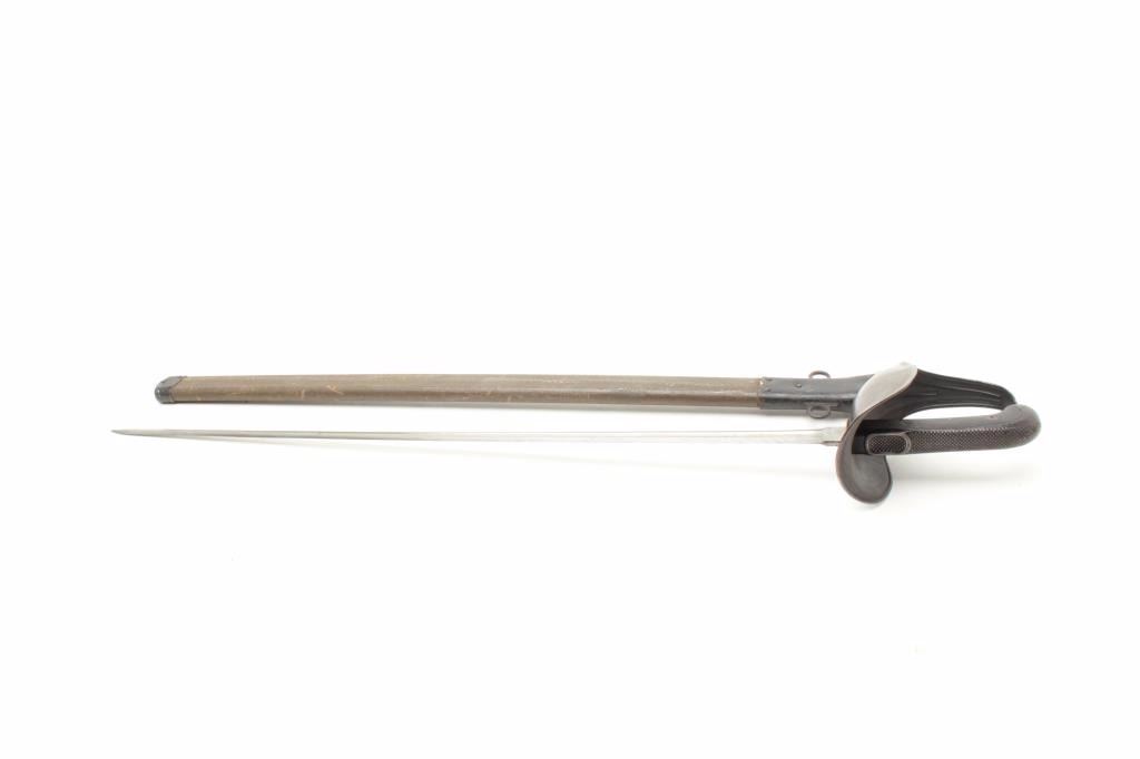 very good plus condition with original scabbard. “U.S.” marked with S/N 17970. A far better than average specimen and desirable early date with Springfield Mfg. A strong 8-8.5 on a 1-10 scale. Est.: $400-$800