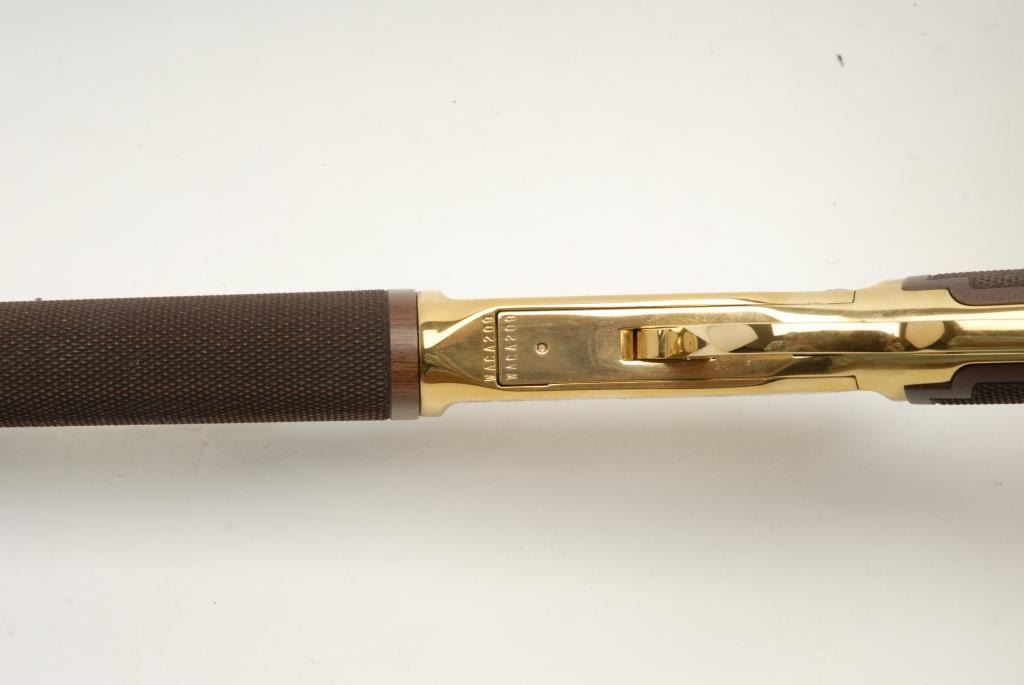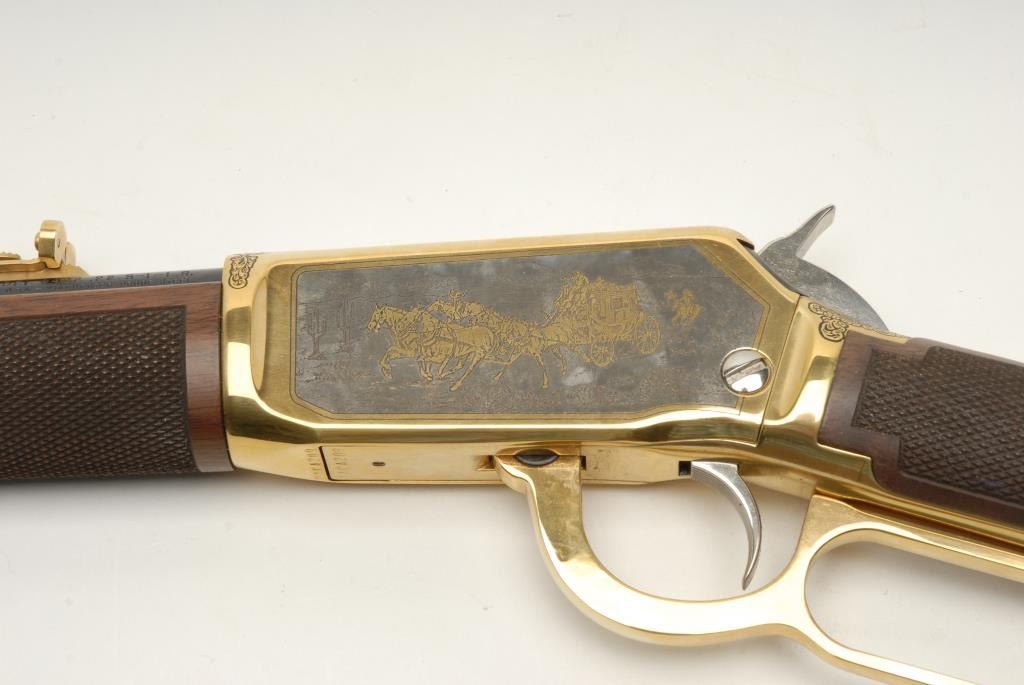 in .22 caliber rimfire with a 16 ½” barrel, S/N WACA209 in series. Mint in box with fancy stocks and gold embellishments. See lot 841 for consecutive serial number. (C&R) Est.: $1500-3000