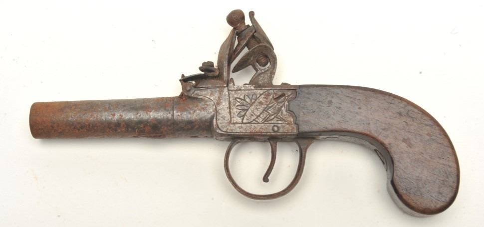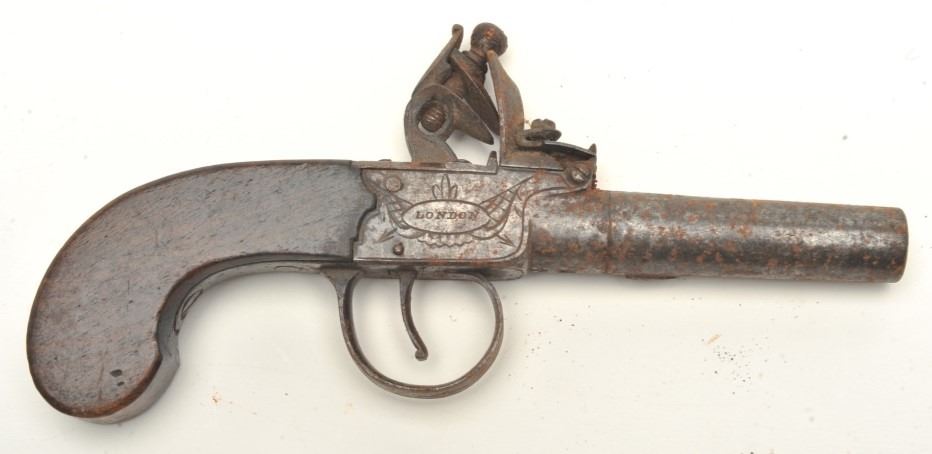 Lot 1187 Flintlock pocket pistol marked London in as found