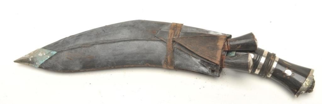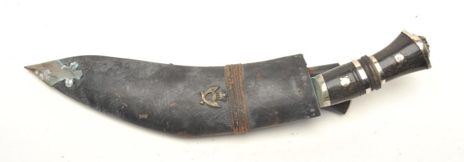 Lot 1193 Ghurka knife with scabbard showing regimental plaque. Stuck