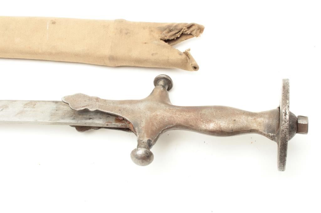 covered wood scabbard. The blade has been cleaned and reduced slightly. Good hilt. In fair condition. Est.: $150-$300