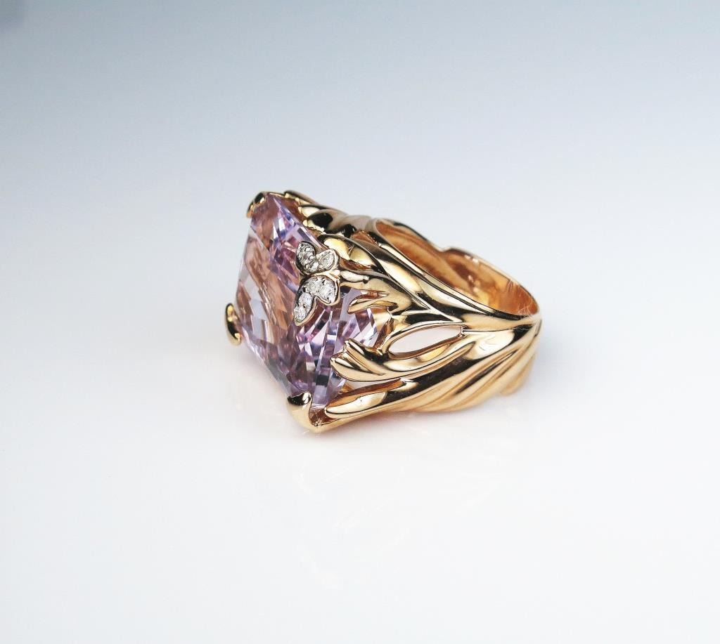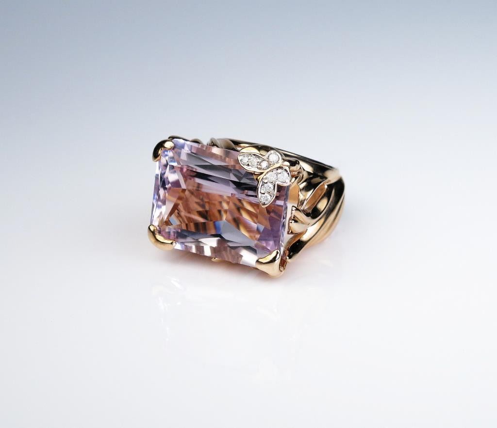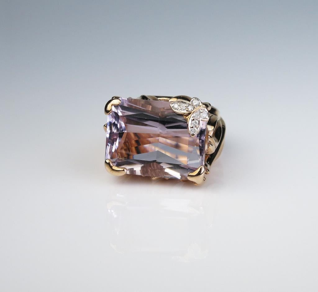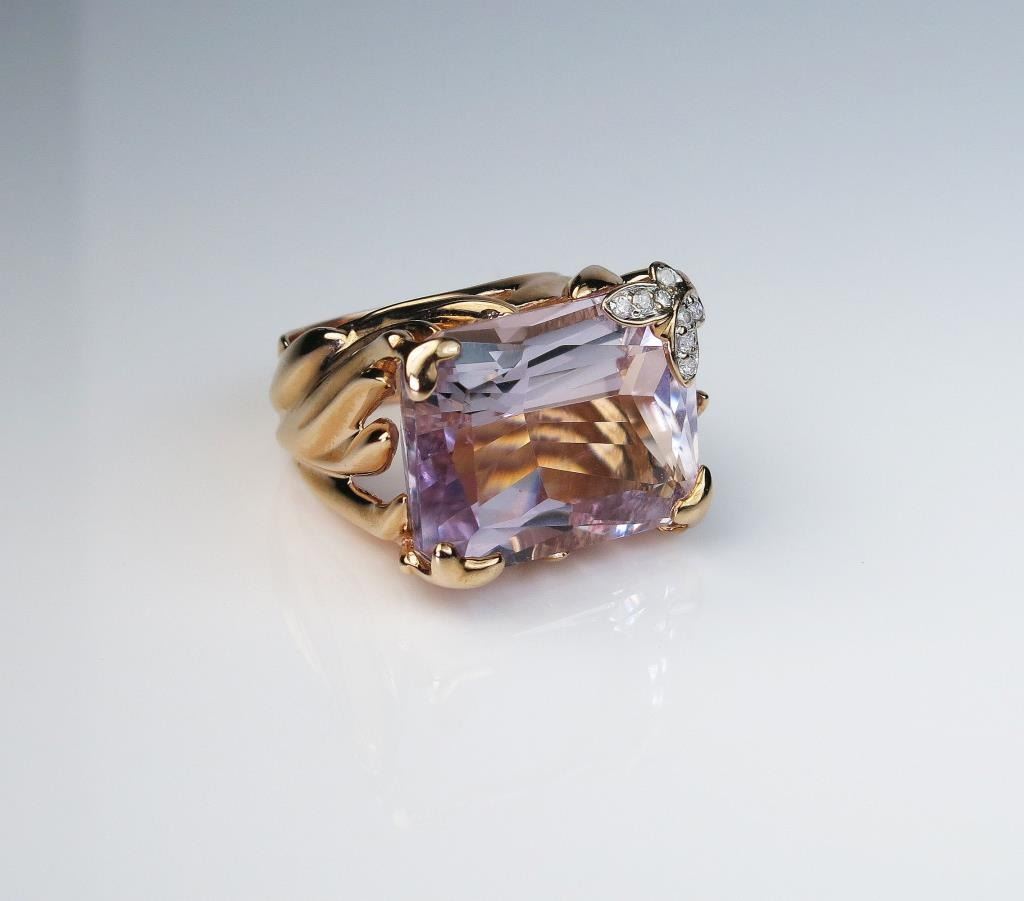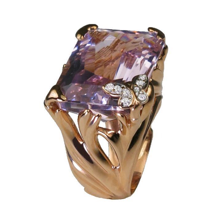 approx. 20.00 carats of VS clarity accented with butterfly set diamonds in a heavy 14 karat rose gold custom made setting. Retail $4,000-$5,000 Estimates $2,000-$3,000