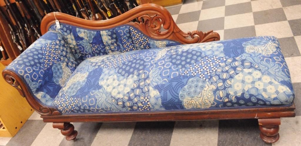 Lot 1287 Antique hardwood frame “fainting” couch, approximately 6’ long,