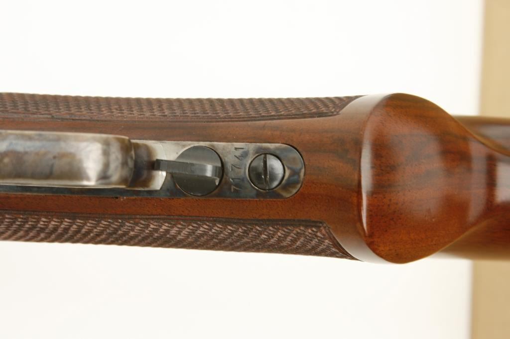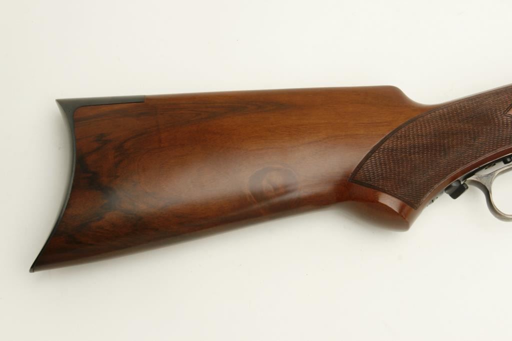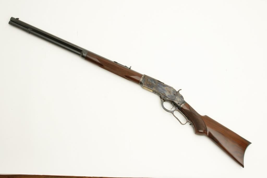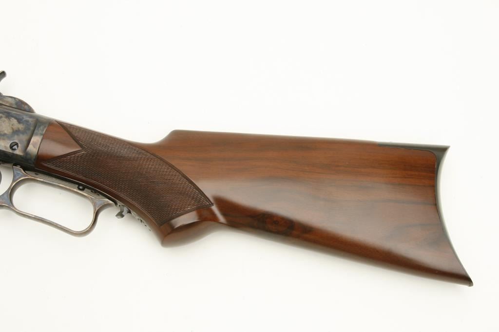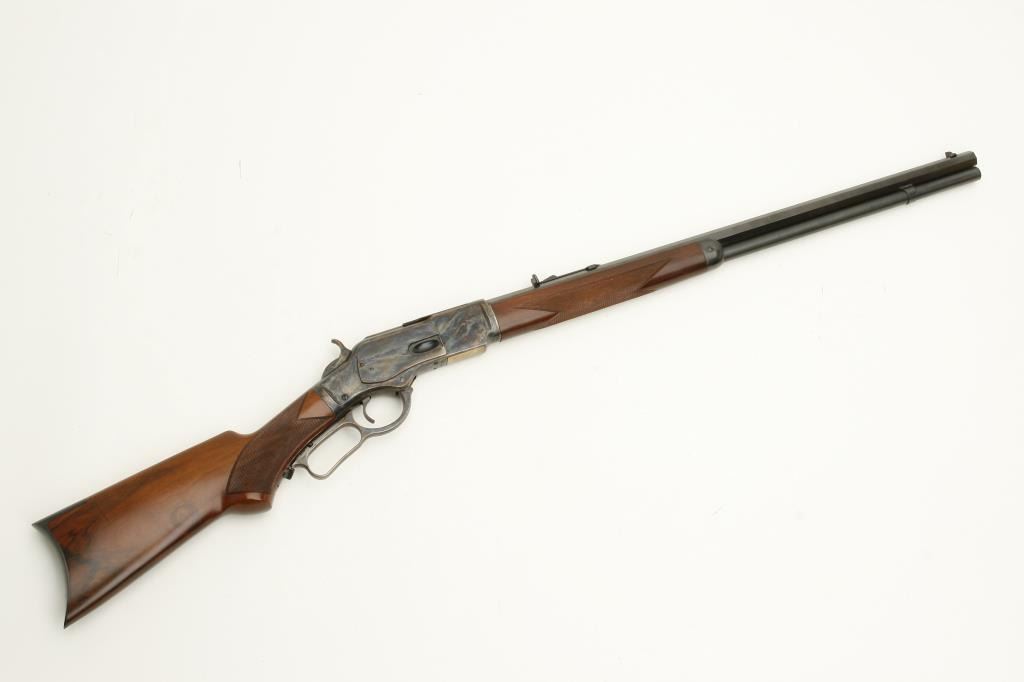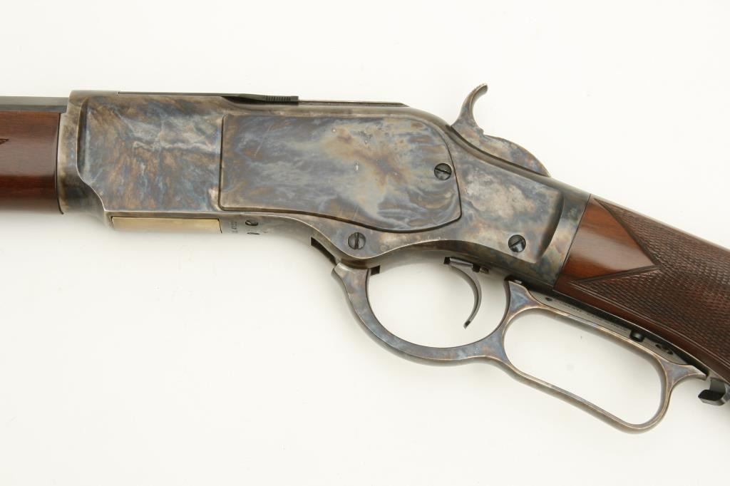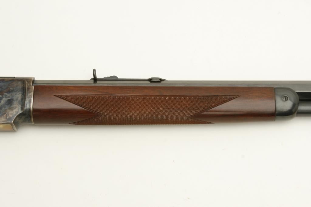 1873 deluxe lever action rifle, .45LC caliber, 24” octagon barrel, blued and case hardened finish, checkered wood deluxe stocks, S/N 71741, in overall excellent condition showing little handling. (Modern). Est.: $500-$1,000.
