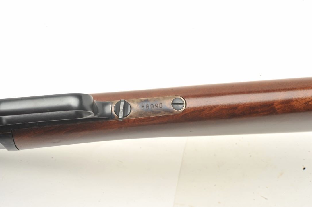 lever action rifle, .45LC caliber, 24” octagon barrel, blued and case hardened finish, standard plain wood stocks, S/N 56090, in overall excellent to like new condition. (Modern). Est.: $400-$800.