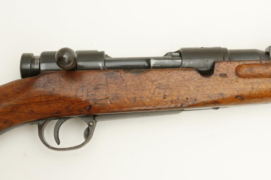 The carbine is in good overall condition with a 20” barrel. The barrel retains the majority of its military finish with the mum on the front ring of the receiver having been ground off. The receiver retains a significant amount of its military finish. The smooth wood stock is in good condition showing moderate to heavy use with dents, compressions and lateral cracks in the butt stock. The butt stock ends with a smooth metal butt plate and includes sling swivels as added. The bore is good, the action is crisp and markings are legible. (C+R) Est.: $200-$400.