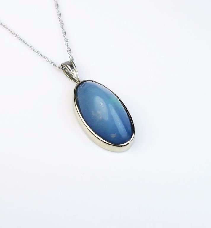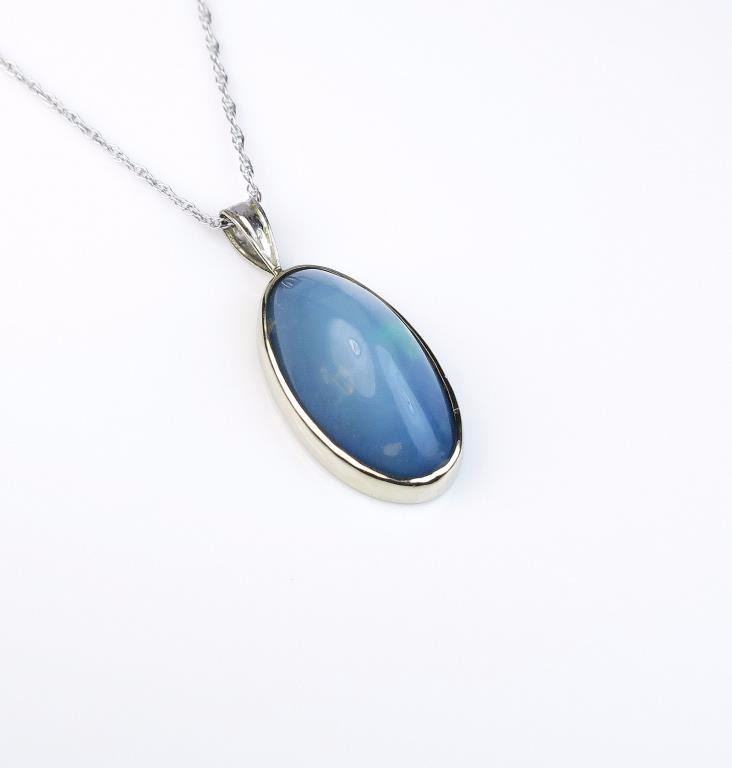 Opal weighing approx. 7.00 carats set in a 14 karat white gold custom made setting. Estimates $800-$1,200